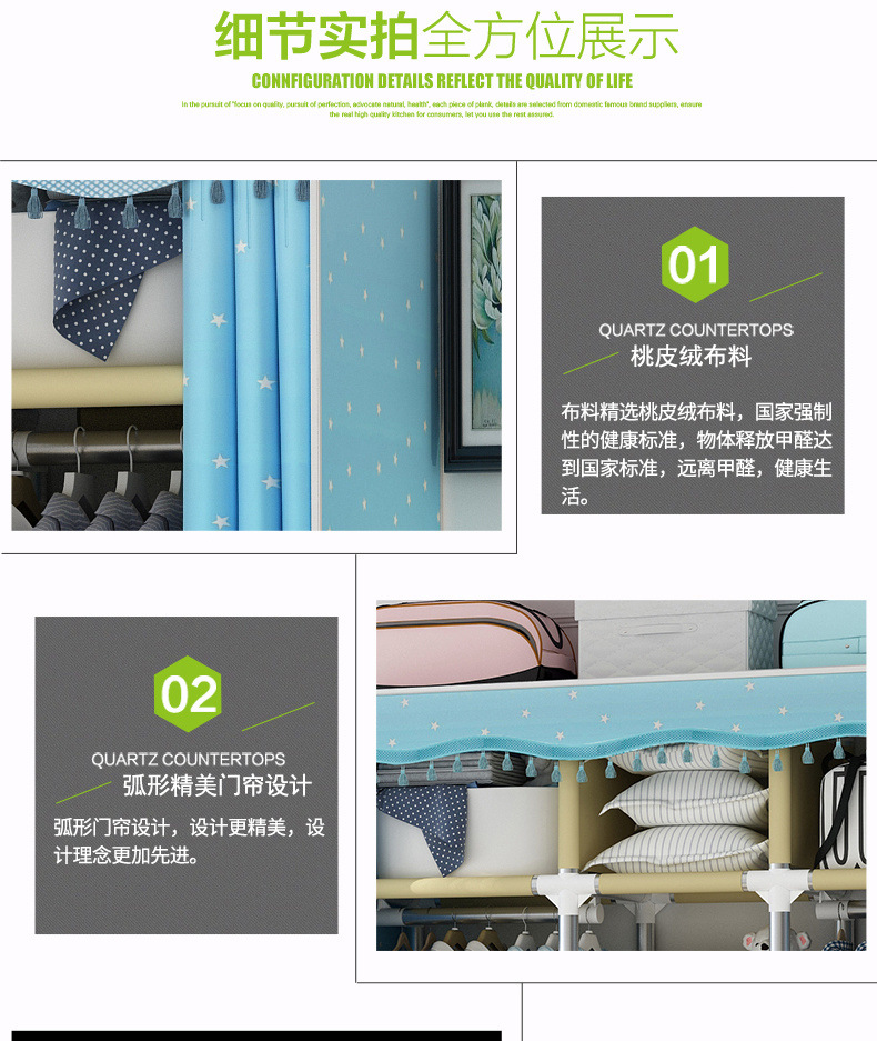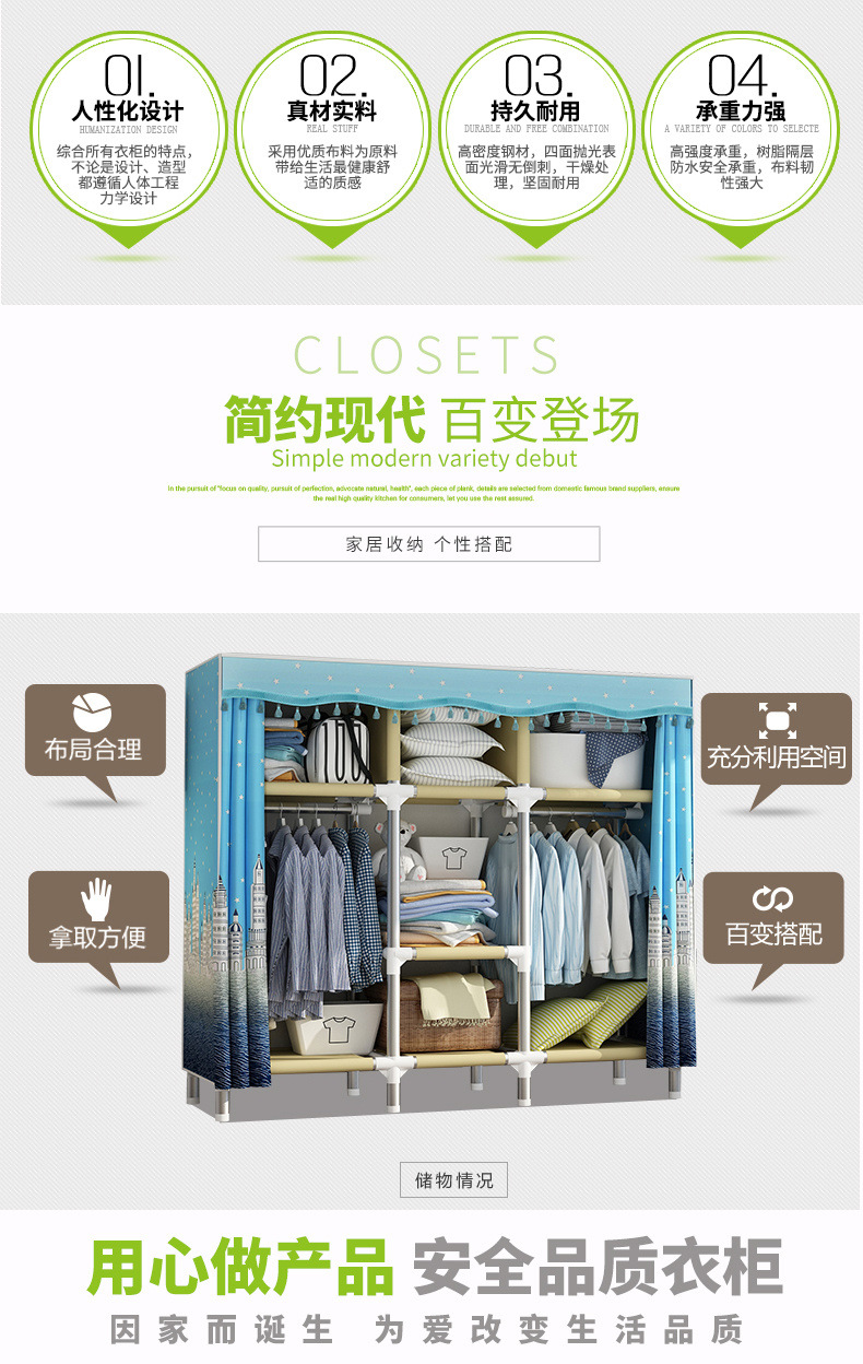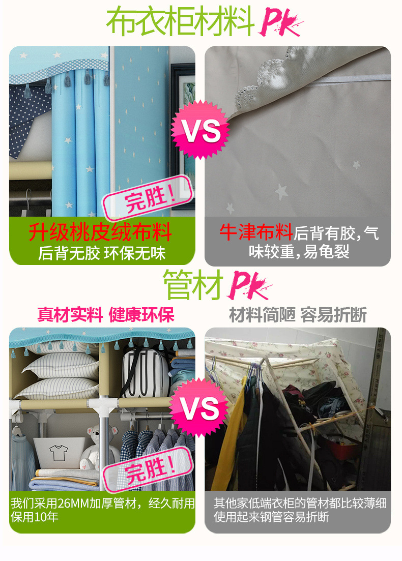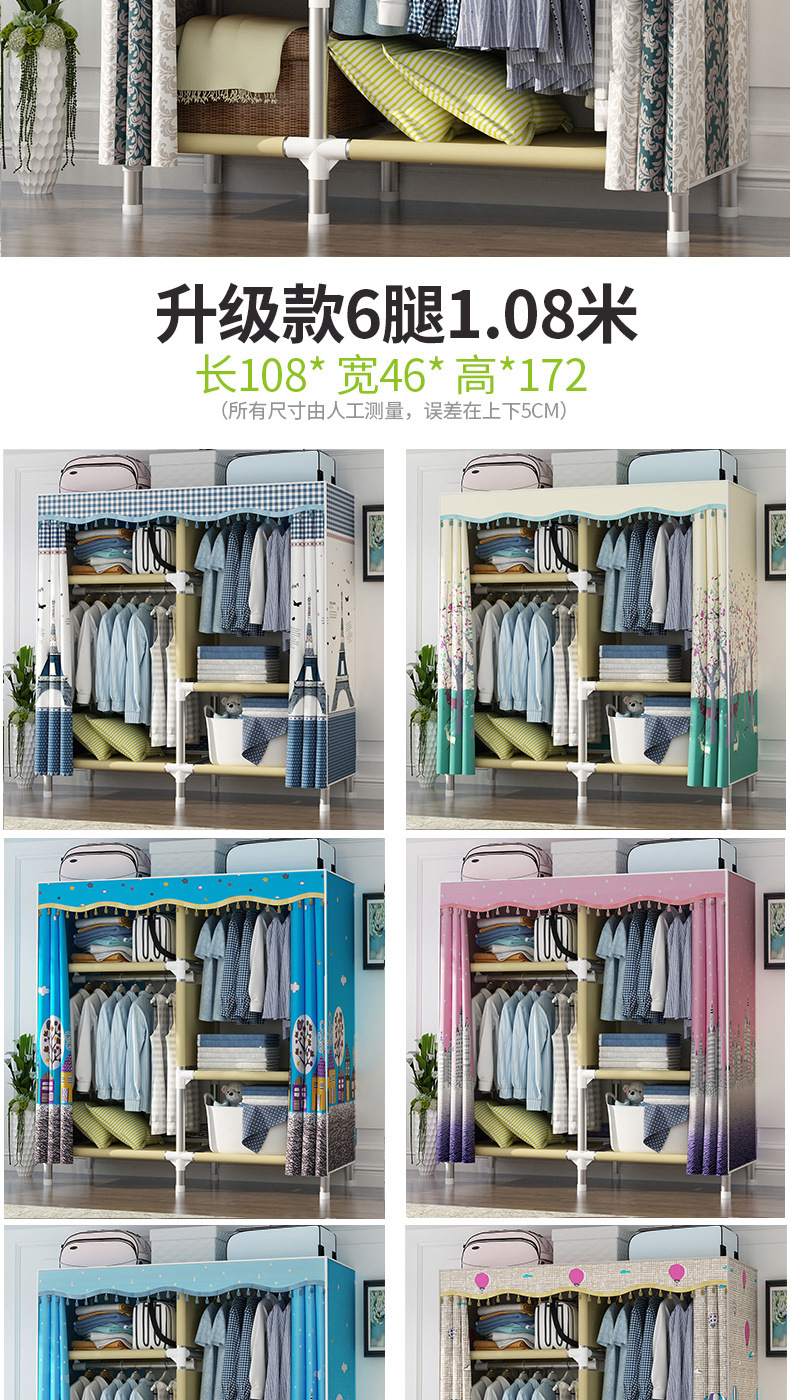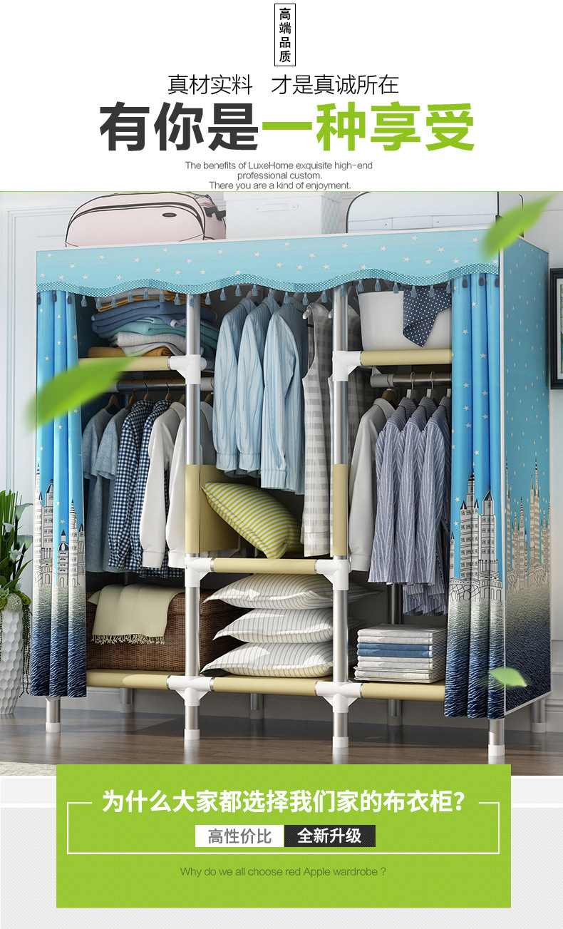 가정용 침실용 간이 천 옷장, 철제 튜브, 두껍고 강화된 옷장 수납 선반, 전철 임대 주택스토어 가기