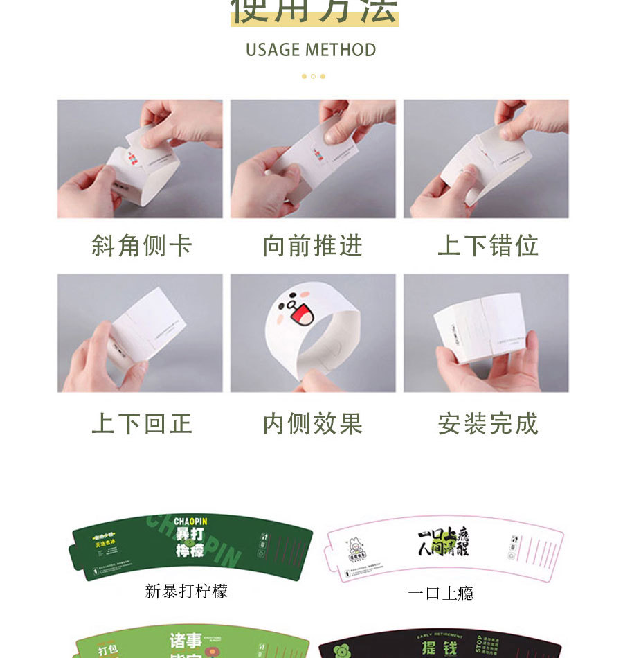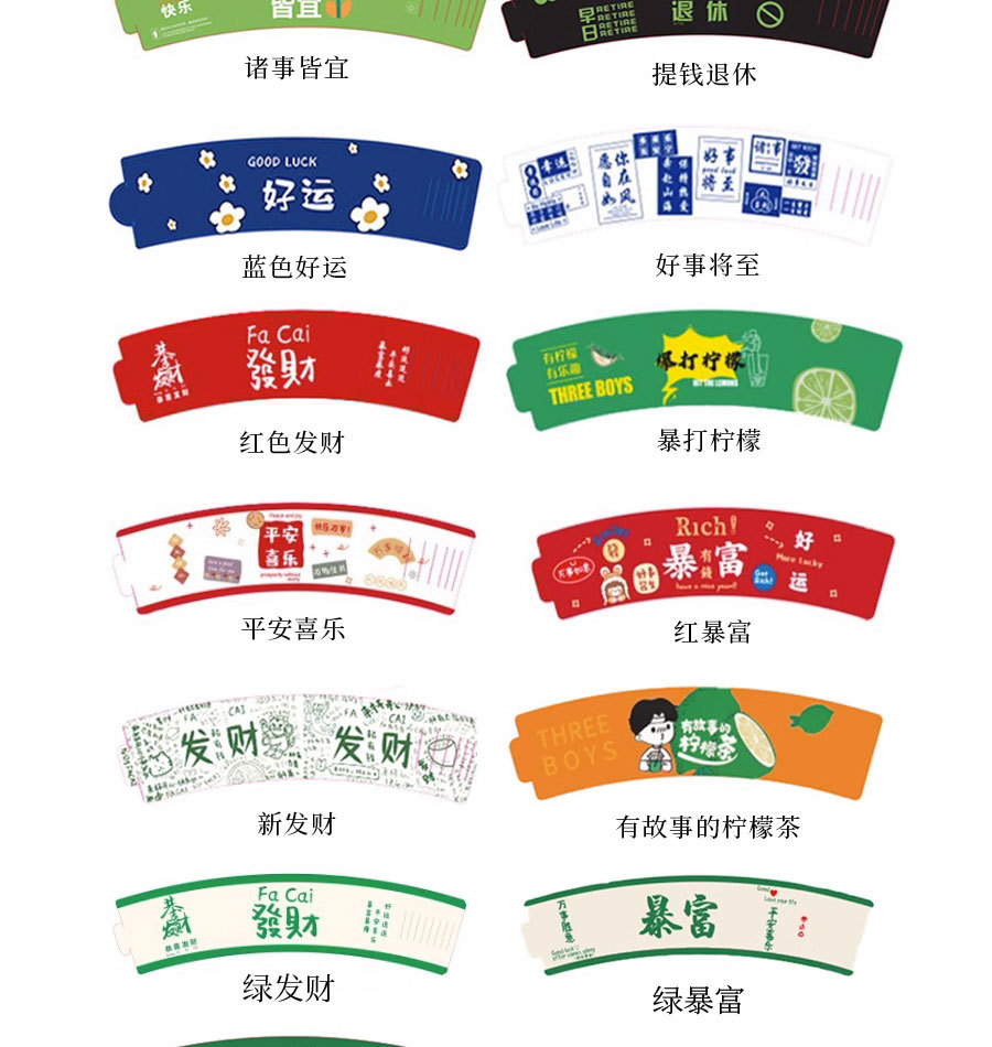 • 컵 + 평면뚜껑 + 빨대 + 종이 + 랜덤 믹스 앤 매치 컵 슬리브 (5개 세트) 98구경
