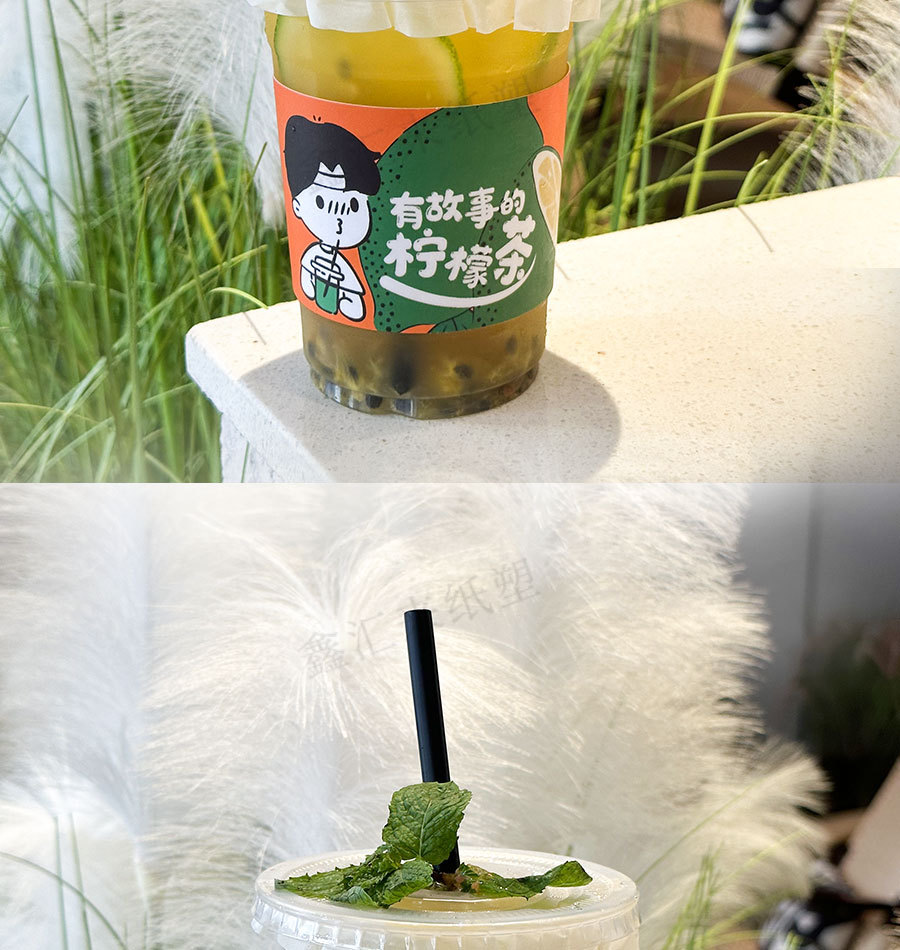 인터넷 연예인 손으로 만든 레몬 500ml 티컵 일회용 뚜껑 상업용 음료 밀크티 커피 애완 동물 플라스틱스토어 가기