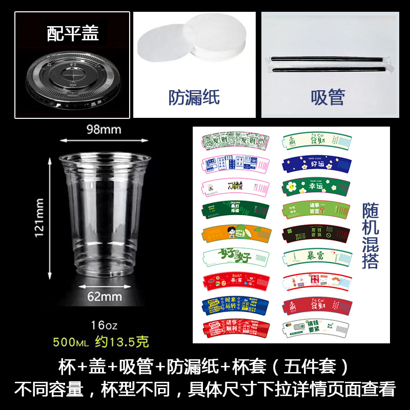 • 컵 + 평면뚜껑 + 빨대 + 종이 + 랜팅 서문 컵 슬리브 (5개 세트) 98구경