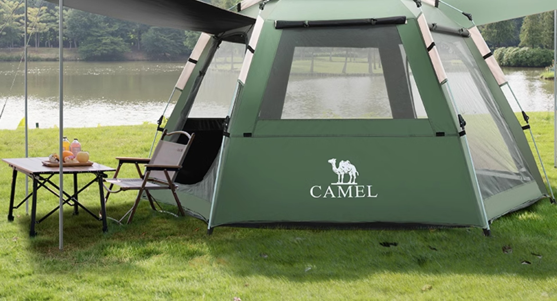 Camel 야외 육각형 자동 캐노피 비닐 태양 보호 텐트 휴대용 등산 캠핑 밤새도록 텐트 공동 구매 도매스토어 가기