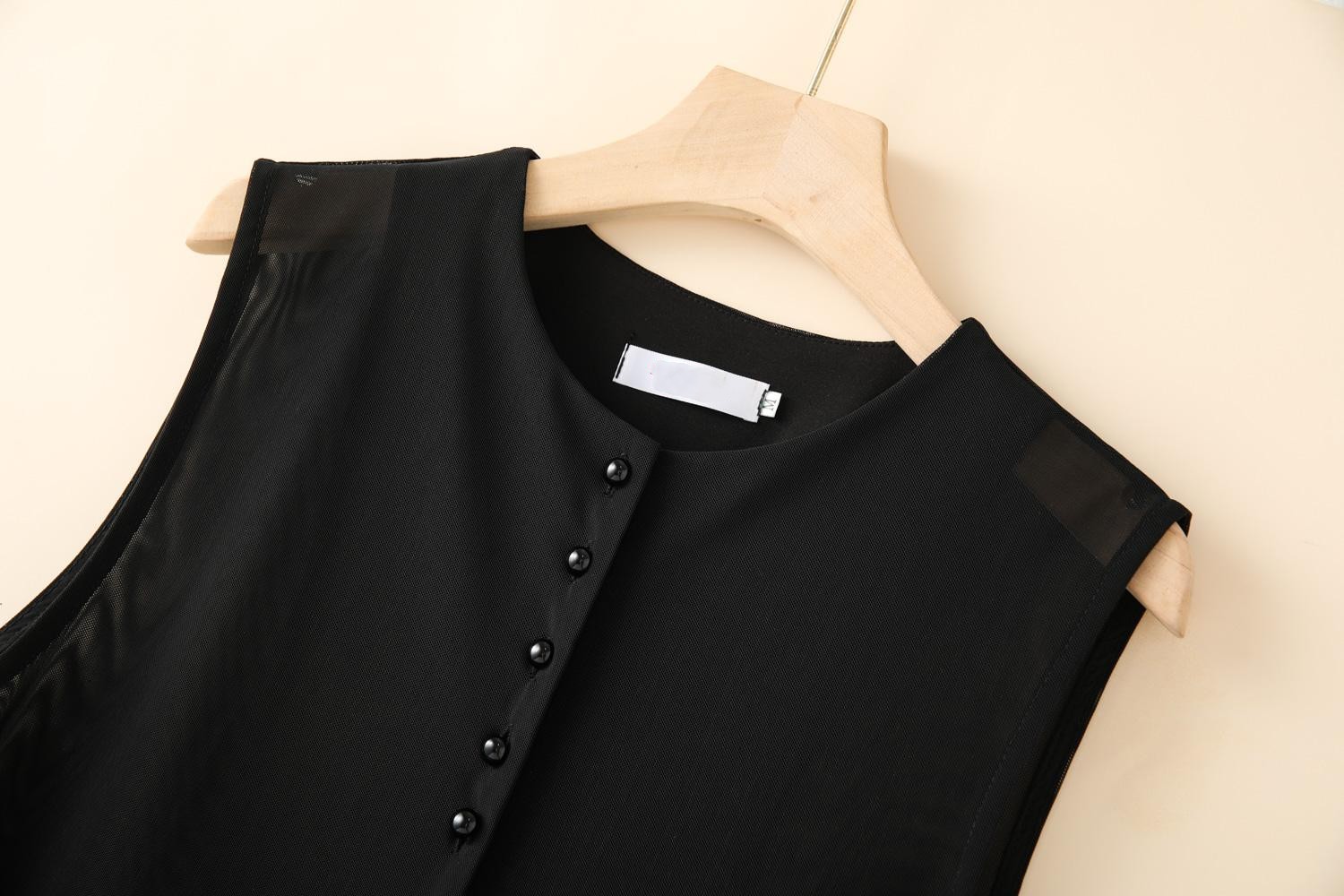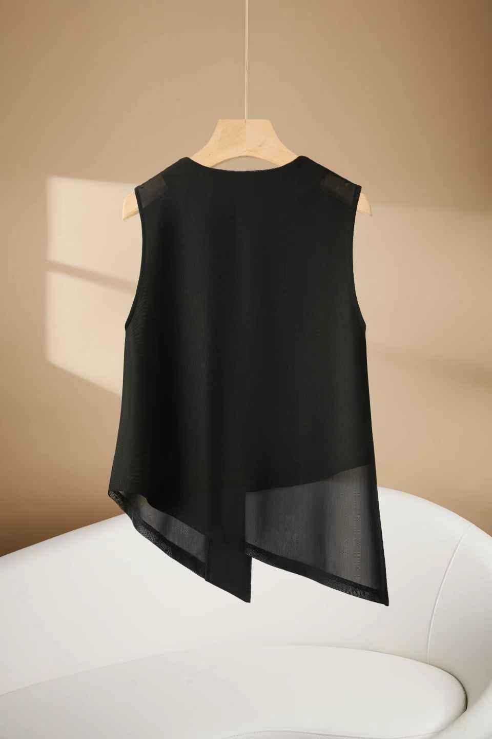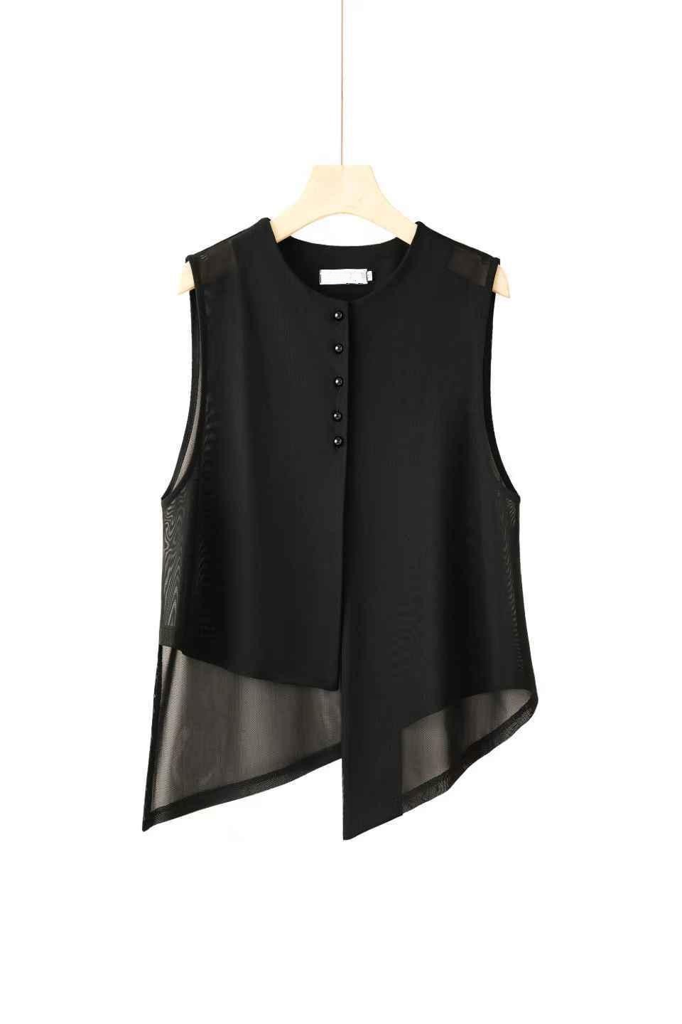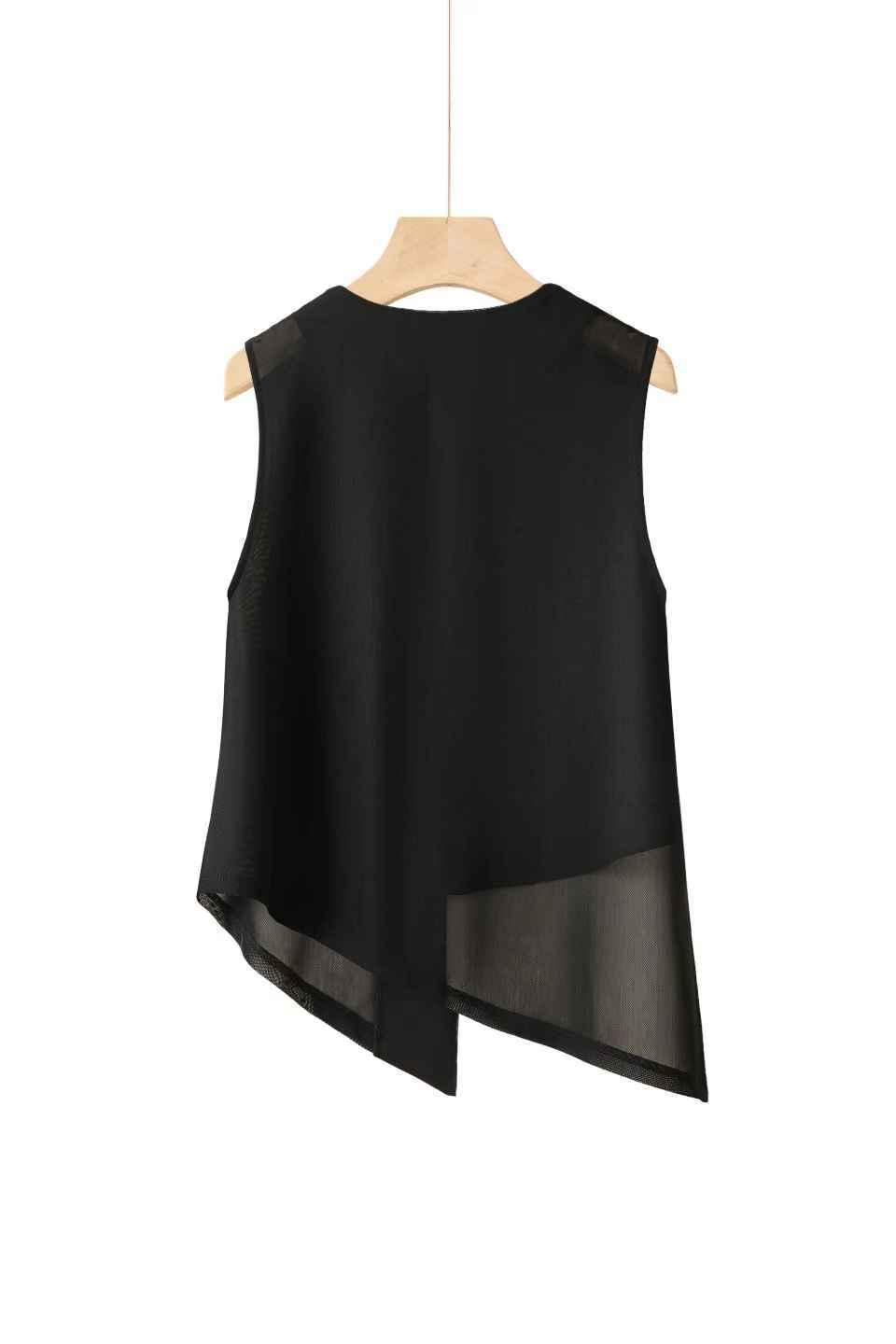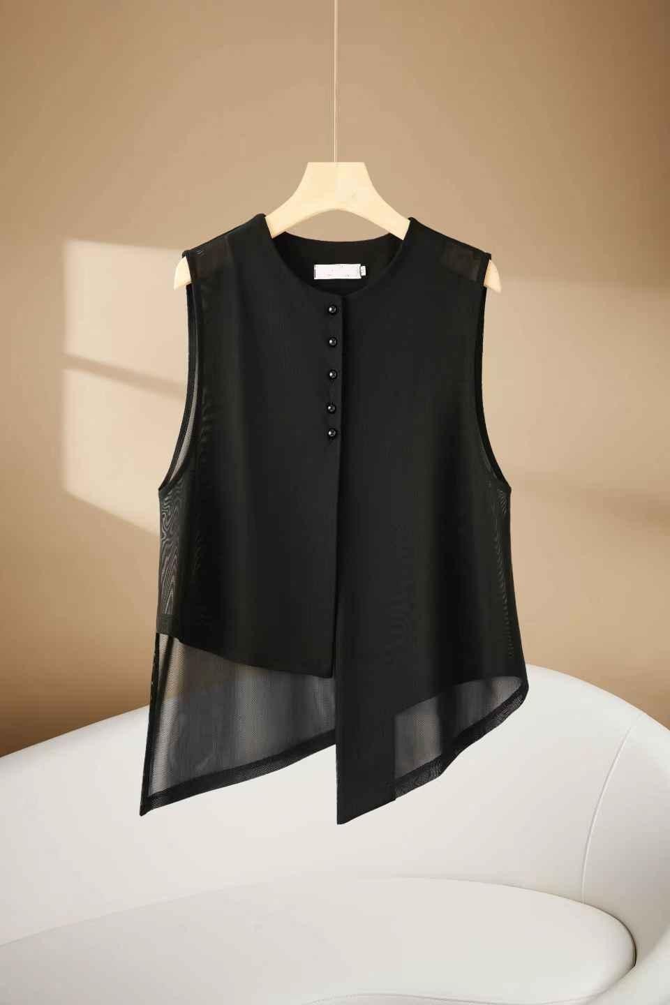 2025 여름 불규칙 패션 조끼, 슬림하고 다재다능한 민소매 여성 디자인 라운드 넥 메쉬 조끼스토어 가기