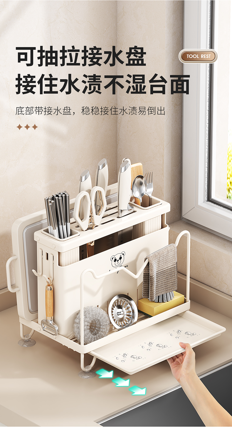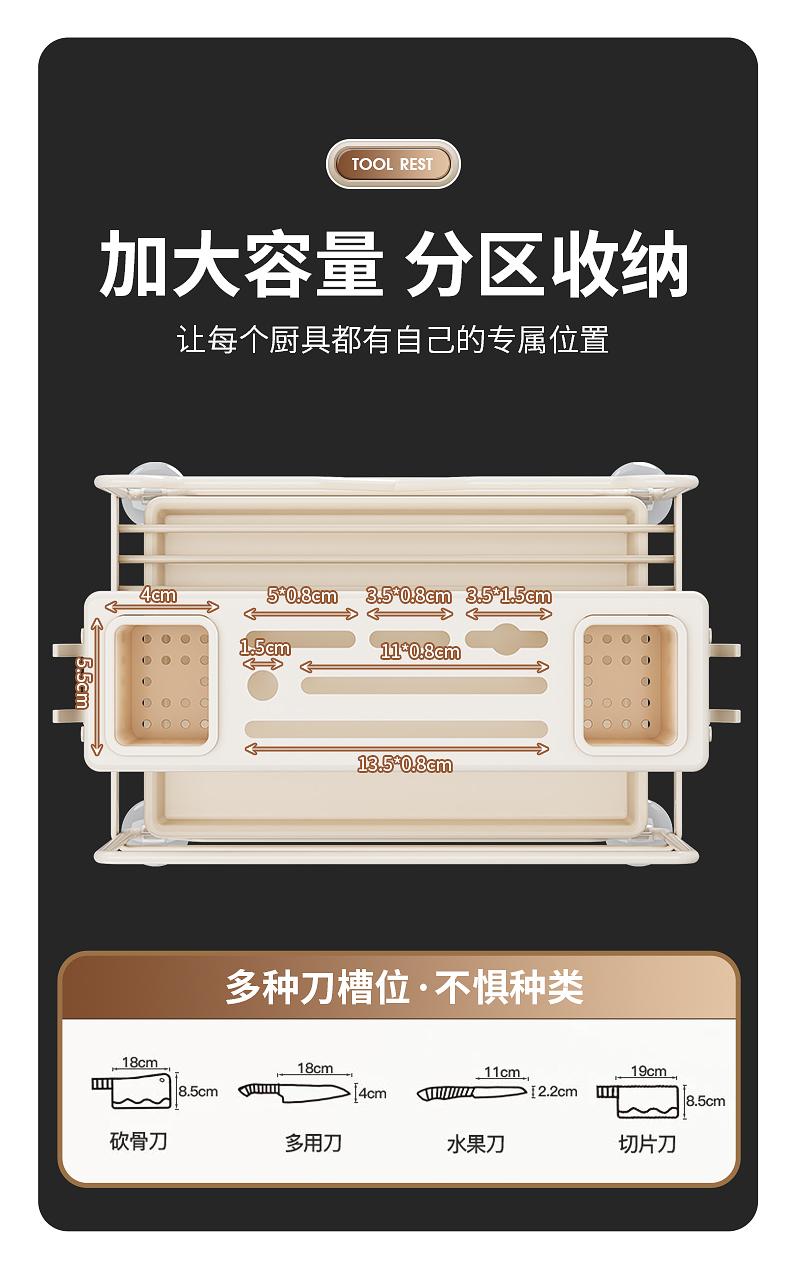 주방칼걸이, 조리대, 주방칼, 도마, 냄비뚜껑 일체형 수납선반, 다기능 도마 및 칼걸이스토어 가기
