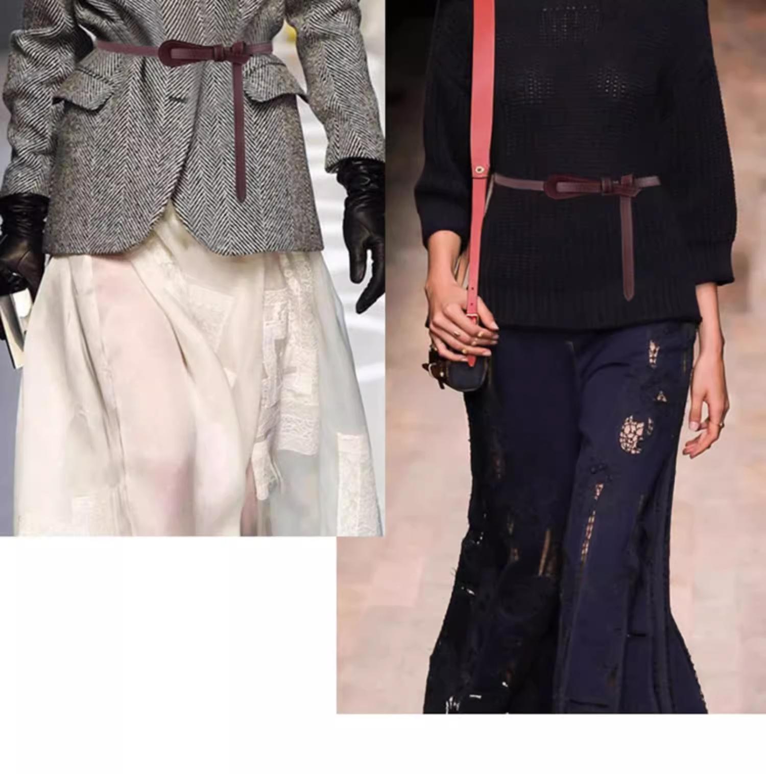 얇은 여성용 벨트, 다용도 매듭 장식 가죽 벨트, 패셔너블한 허리 조임끈