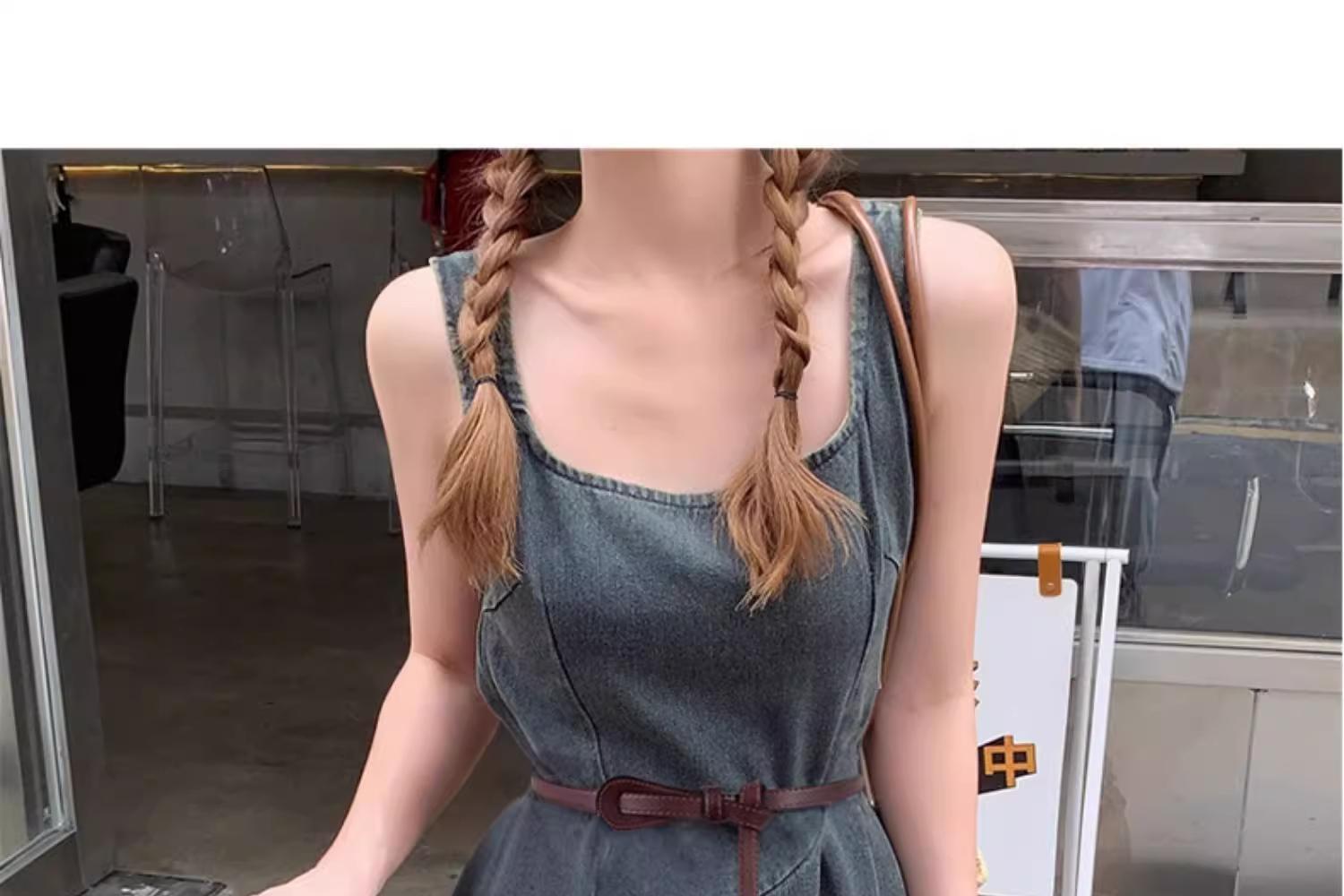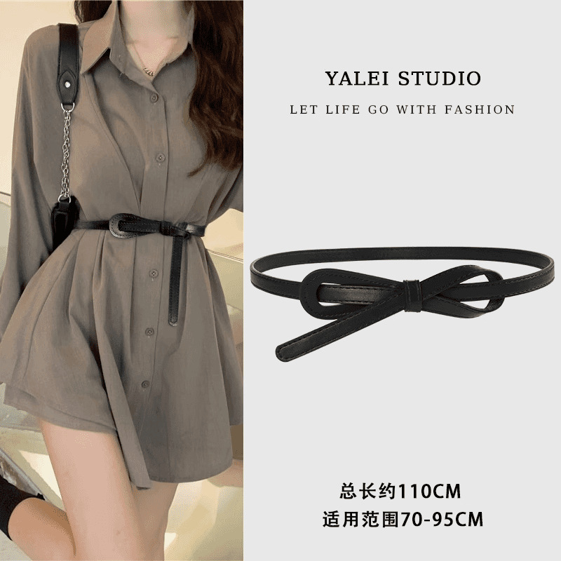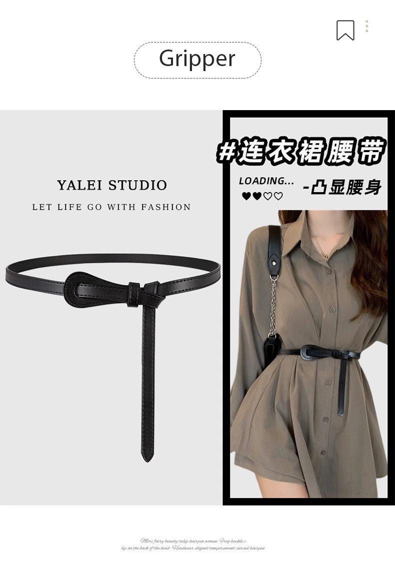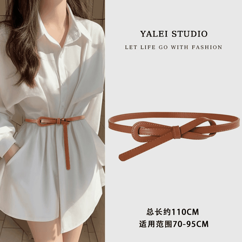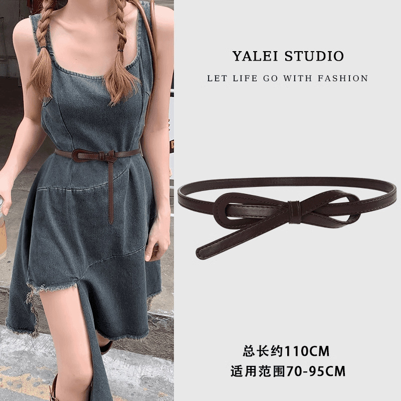 얇은 여성용 벨트, 다용도 매듭 장식 가죽 벨트, 패셔너블한 허리 조임끈스토어 가기