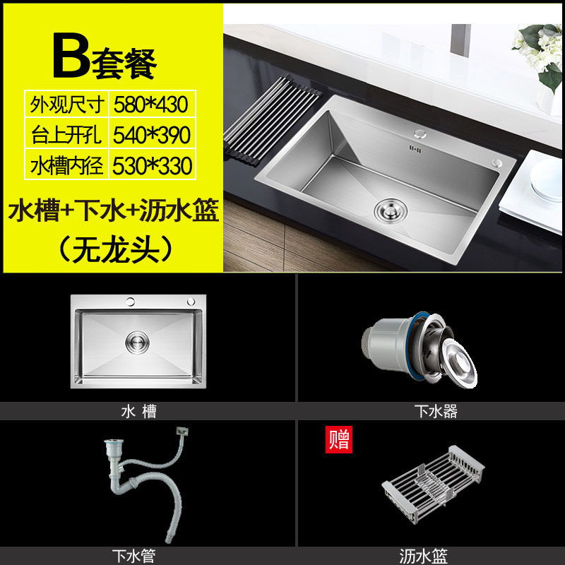 • ·패키지 F [스테인리스 수전 싱크대 + 전체 부속품] - [두꺼운 수제 싱글 싱크대] 58*43