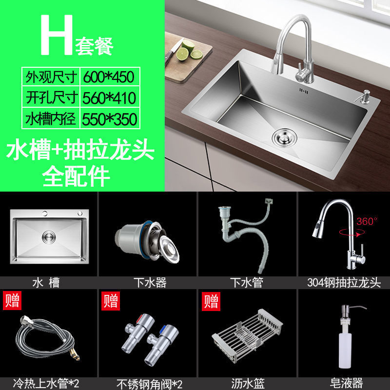 • ·패키지 H [둥근 인출식 수도꼭지가 있는 싱크대 + 전체 액세서리] - [두꺼운 수제 싱글 슬롯] 60*45