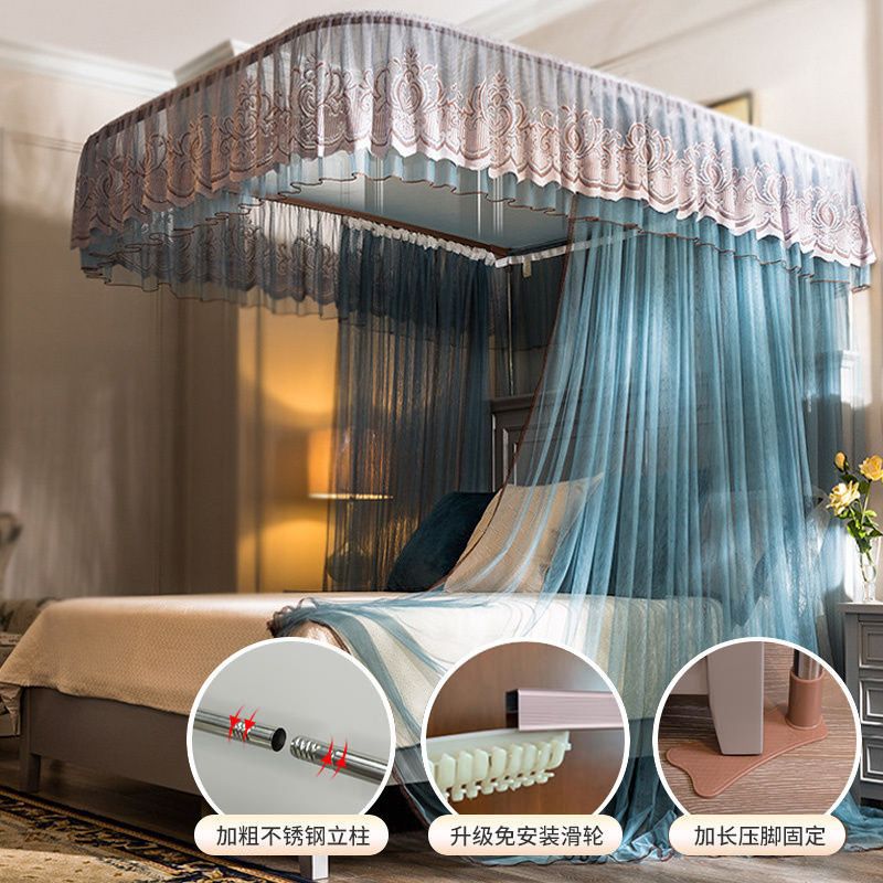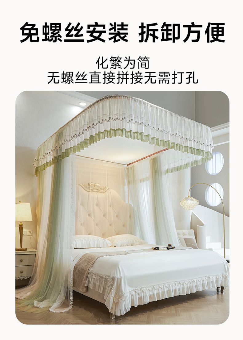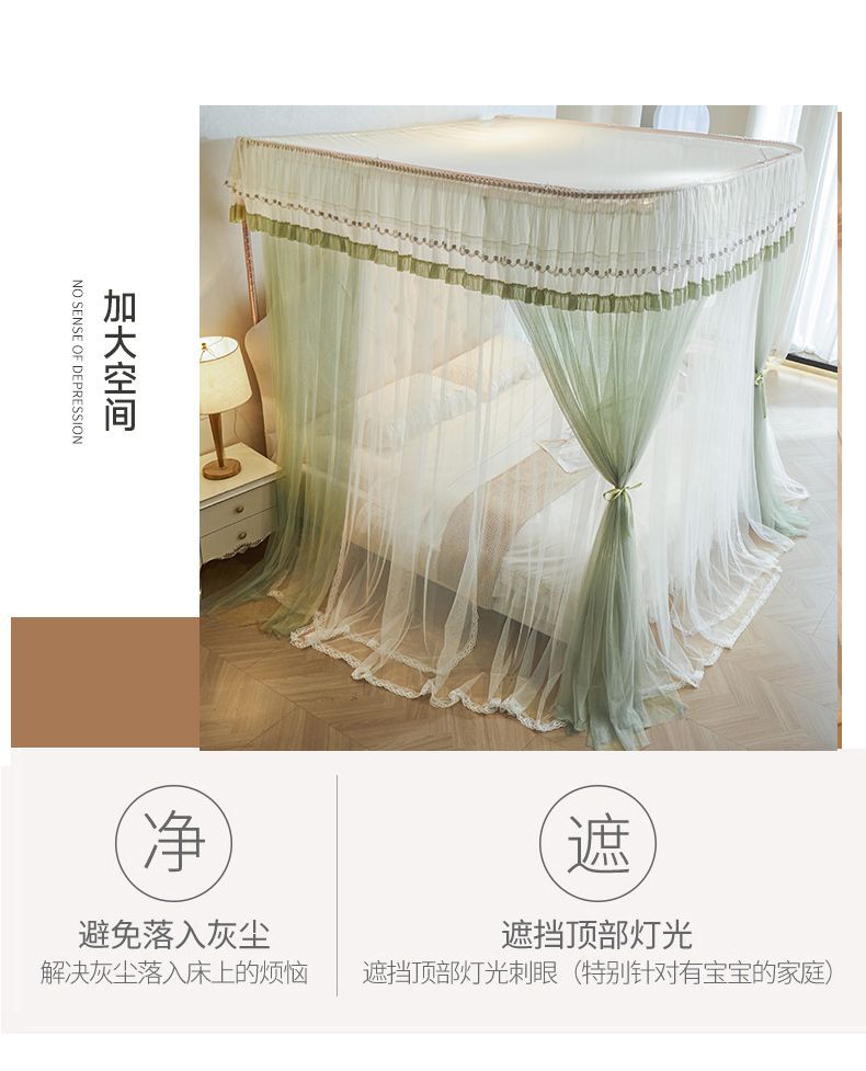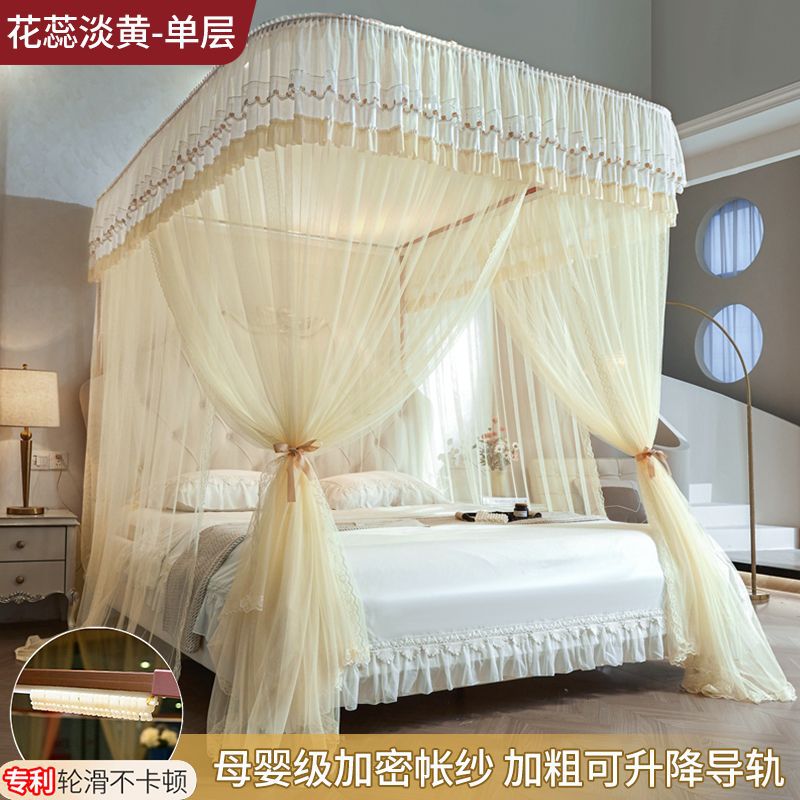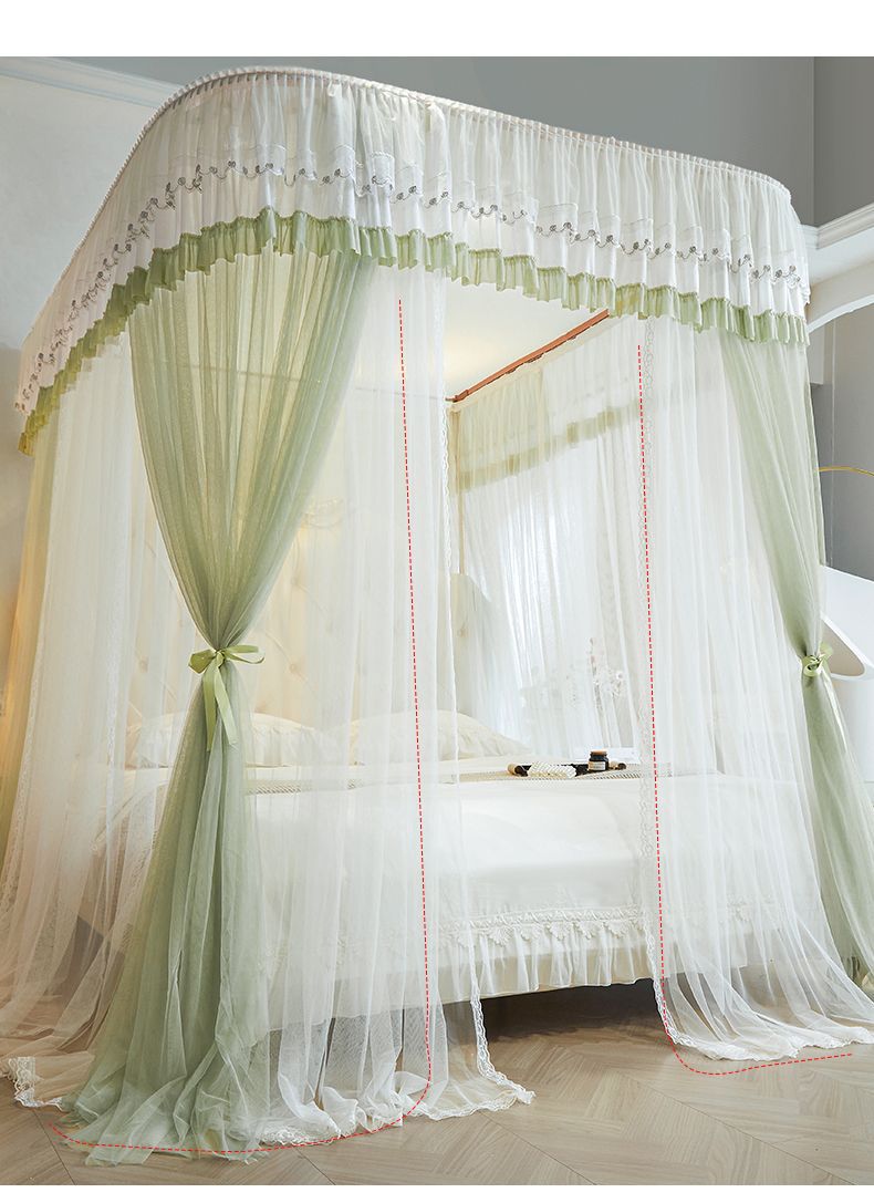새로운 Mianbao u 더블 레이어 침대 커튼 공주 스타일 레일 모기장 바닥형 수면 거즈 커튼 궁전 침실 홈스토어 가기