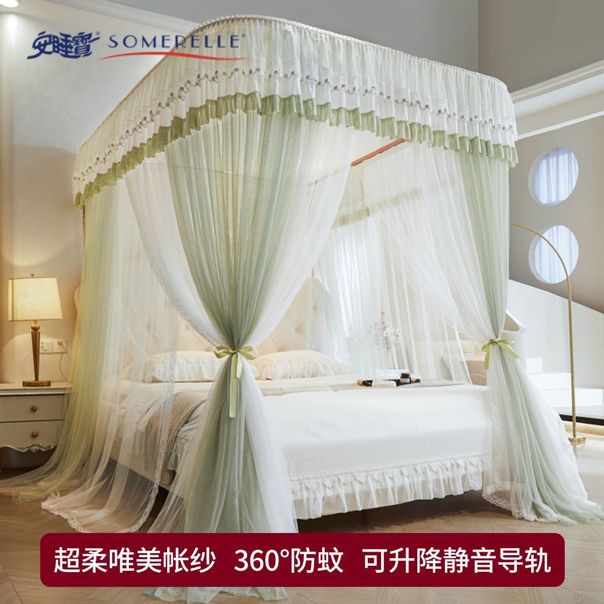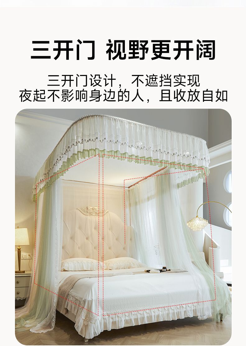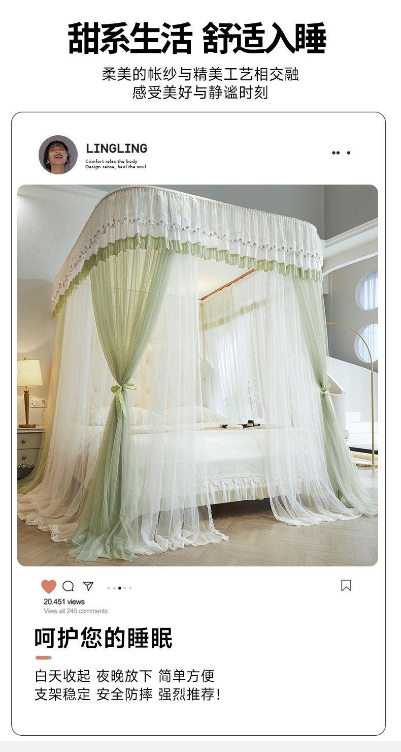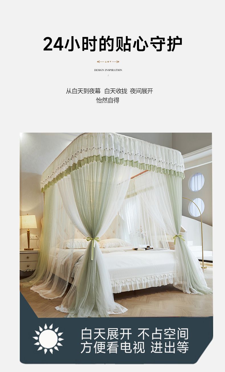 새로운 Mianbao u 더블 레이어 침대 커튼 공주 스타일 레일 모기장 바닥형 수면 거즈 커튼 궁전 침실 홈스토어 가기