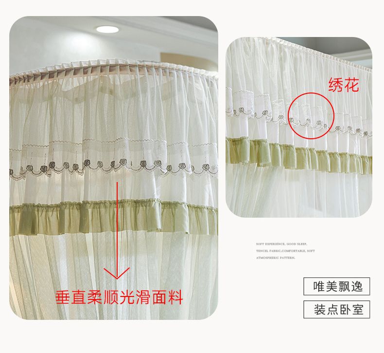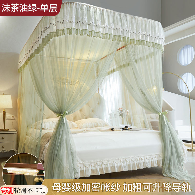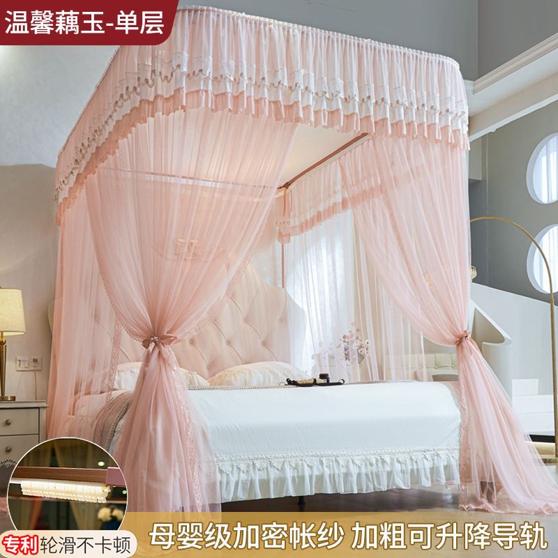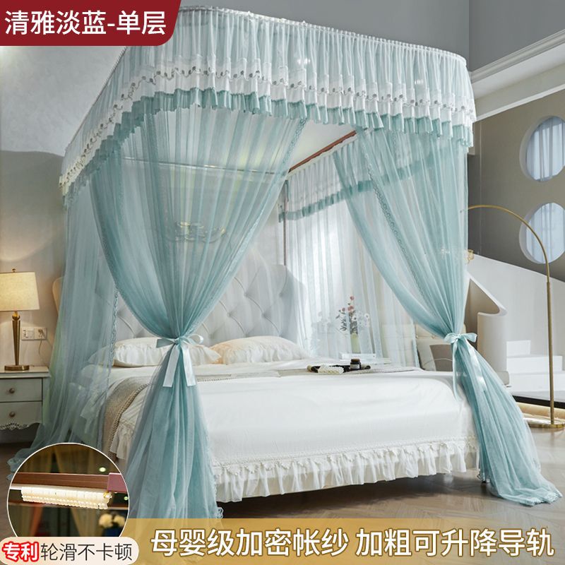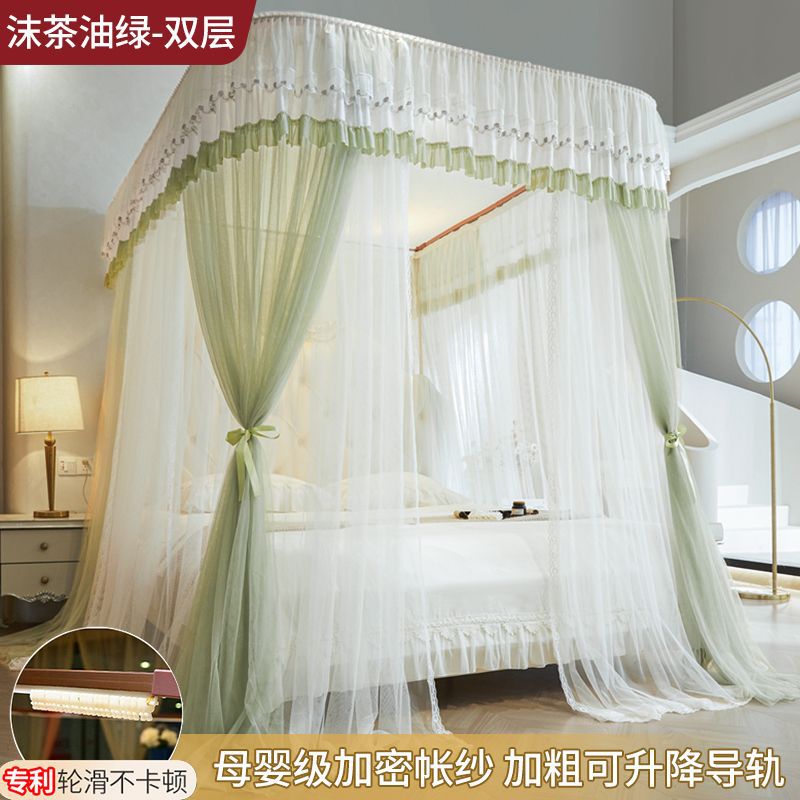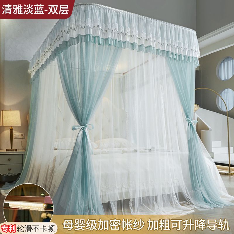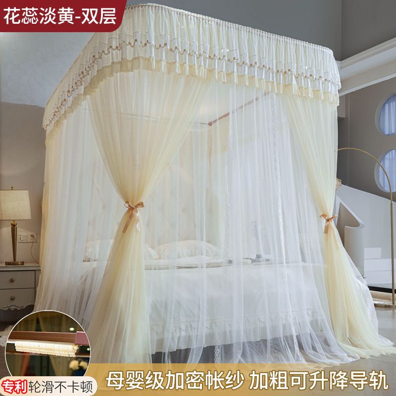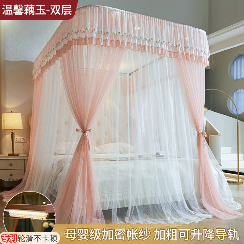 새로운 Mianbao u 더블 레이어 침대 커튼 공주 스타일 레일 모기장 바닥형 수면 거즈 커튼 궁전 침실 홈