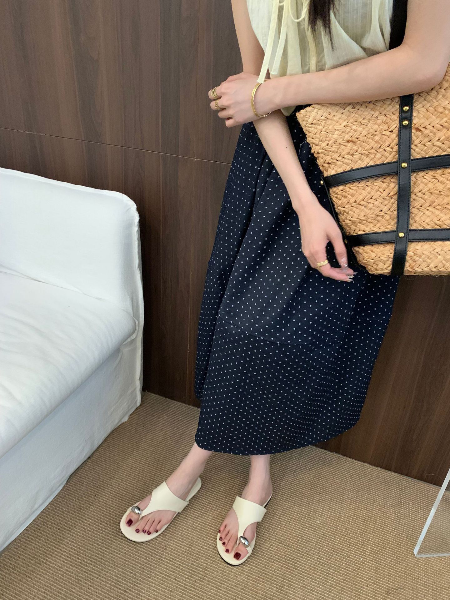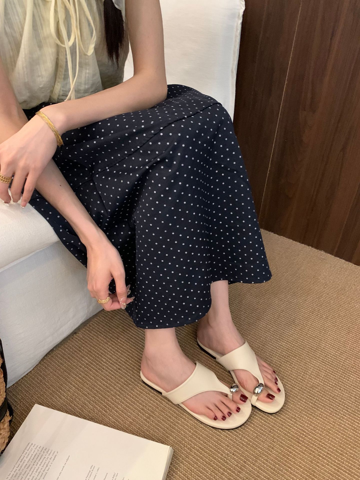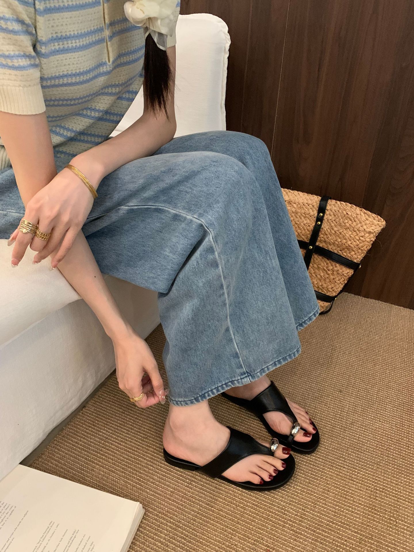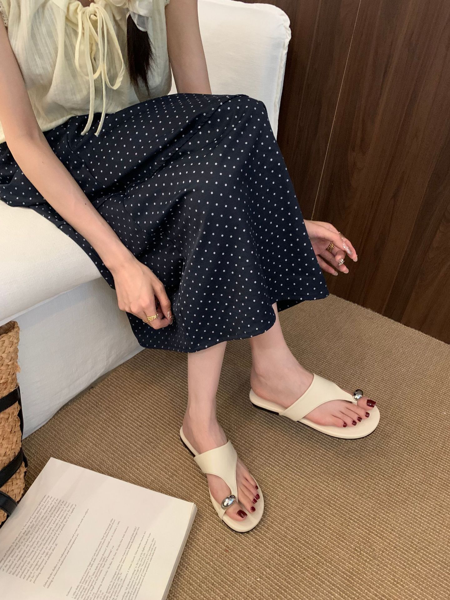 부드러운 가죽 버전 ~ 여성용 프렌치 슬리퍼 2025 뉴 레트로 다용도 플랫 메탈 슬리퍼 비치 슈즈 슬리퍼