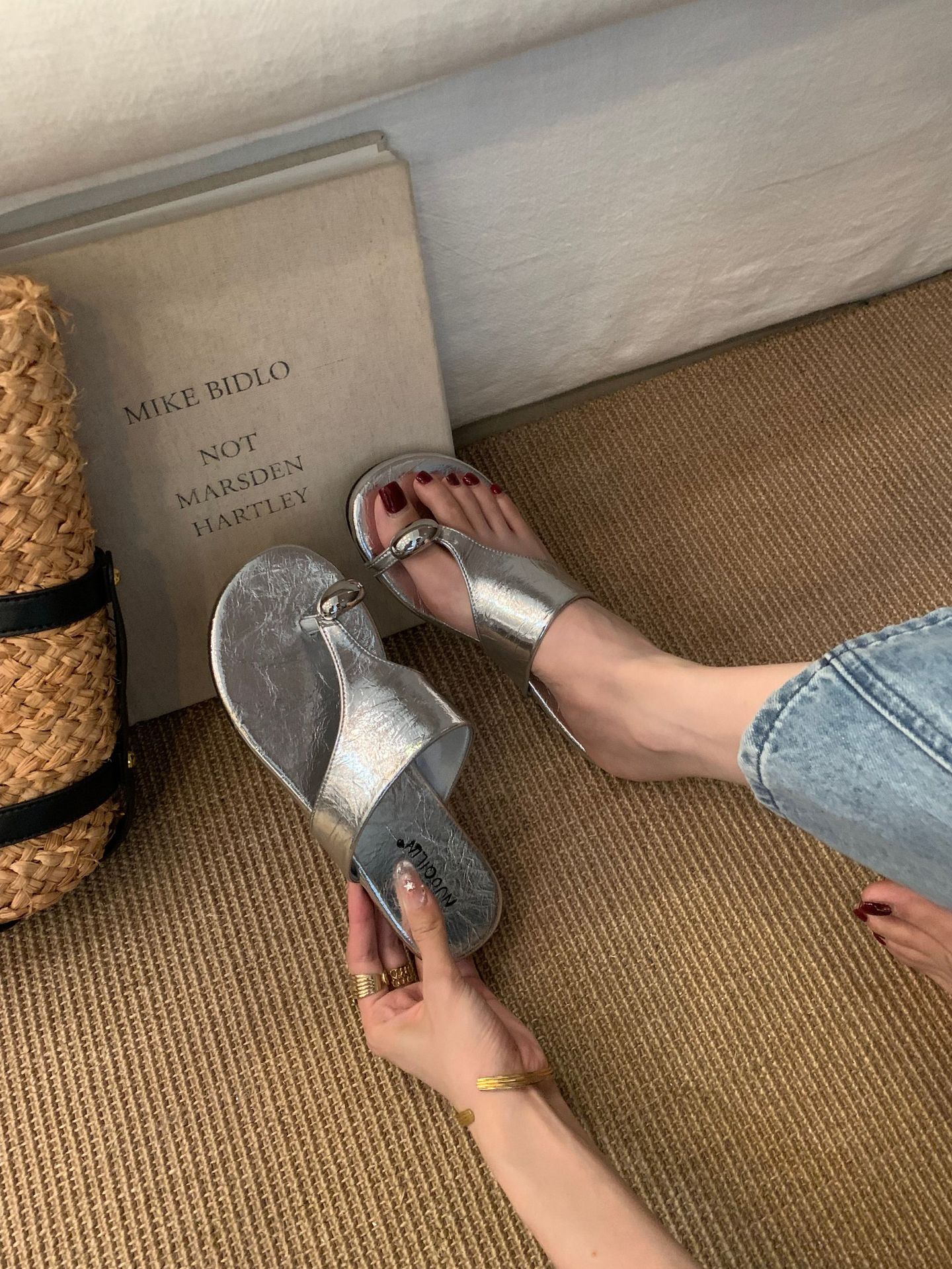 부드러운 가죽 버전 ~ 여성용 프렌치 슬리퍼 2025 뉴 레트로 다용도 플랫 메탈 슬리퍼 비치 슈즈 슬리퍼스토어 가기