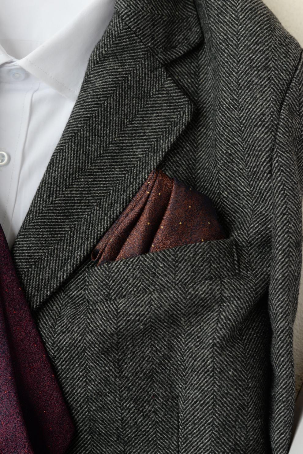 • 브라운과 실버 도트 (넥타이 + 포켓 스퀘어)