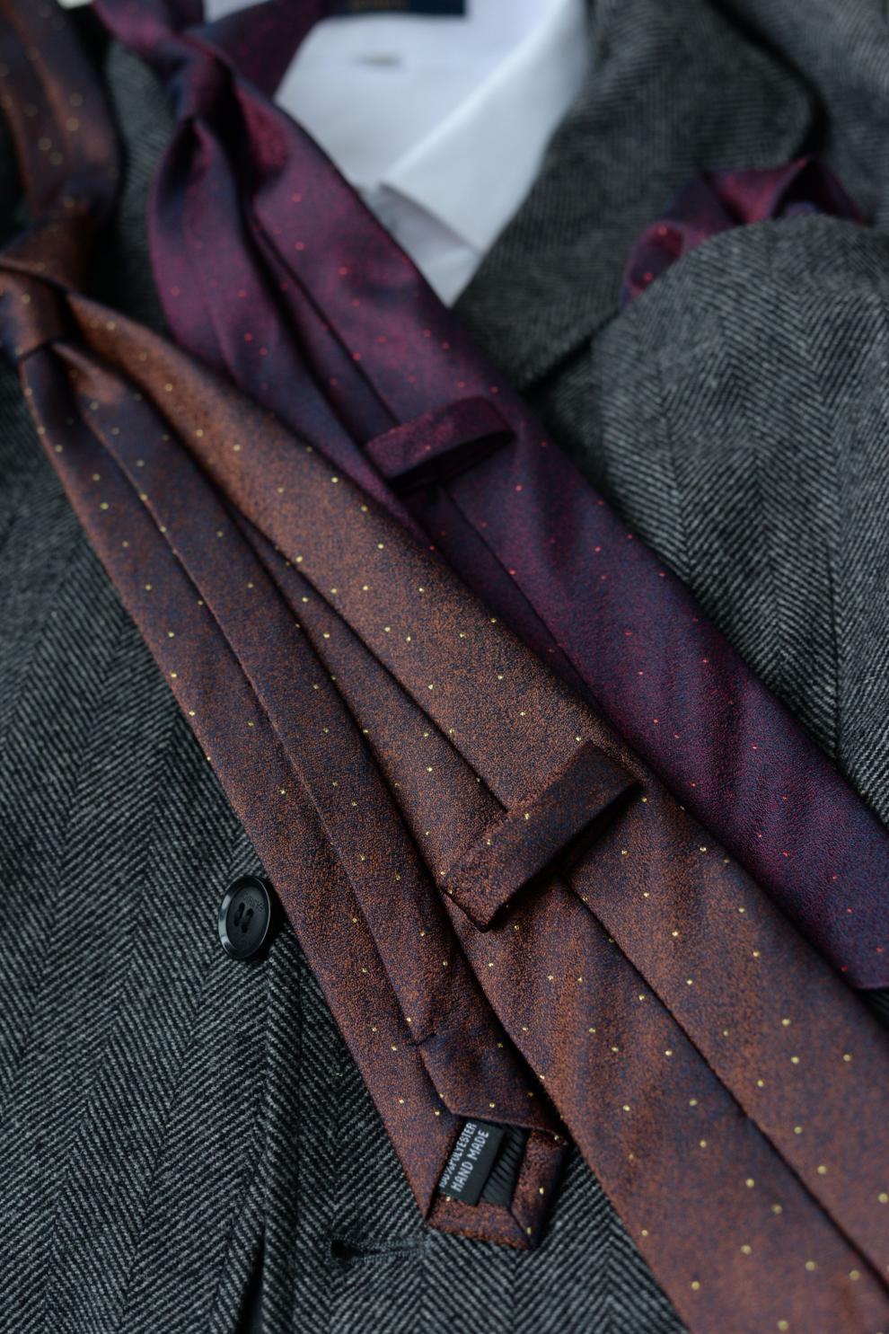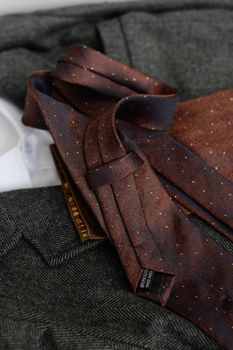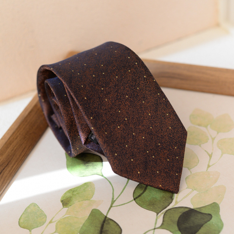 • 브라운과 실버 도트(손으로 묶은 넥타이)