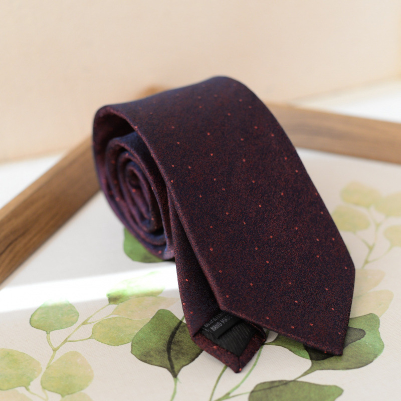 • 보라색과 은색 도트(손으로 묶은 넥타이)