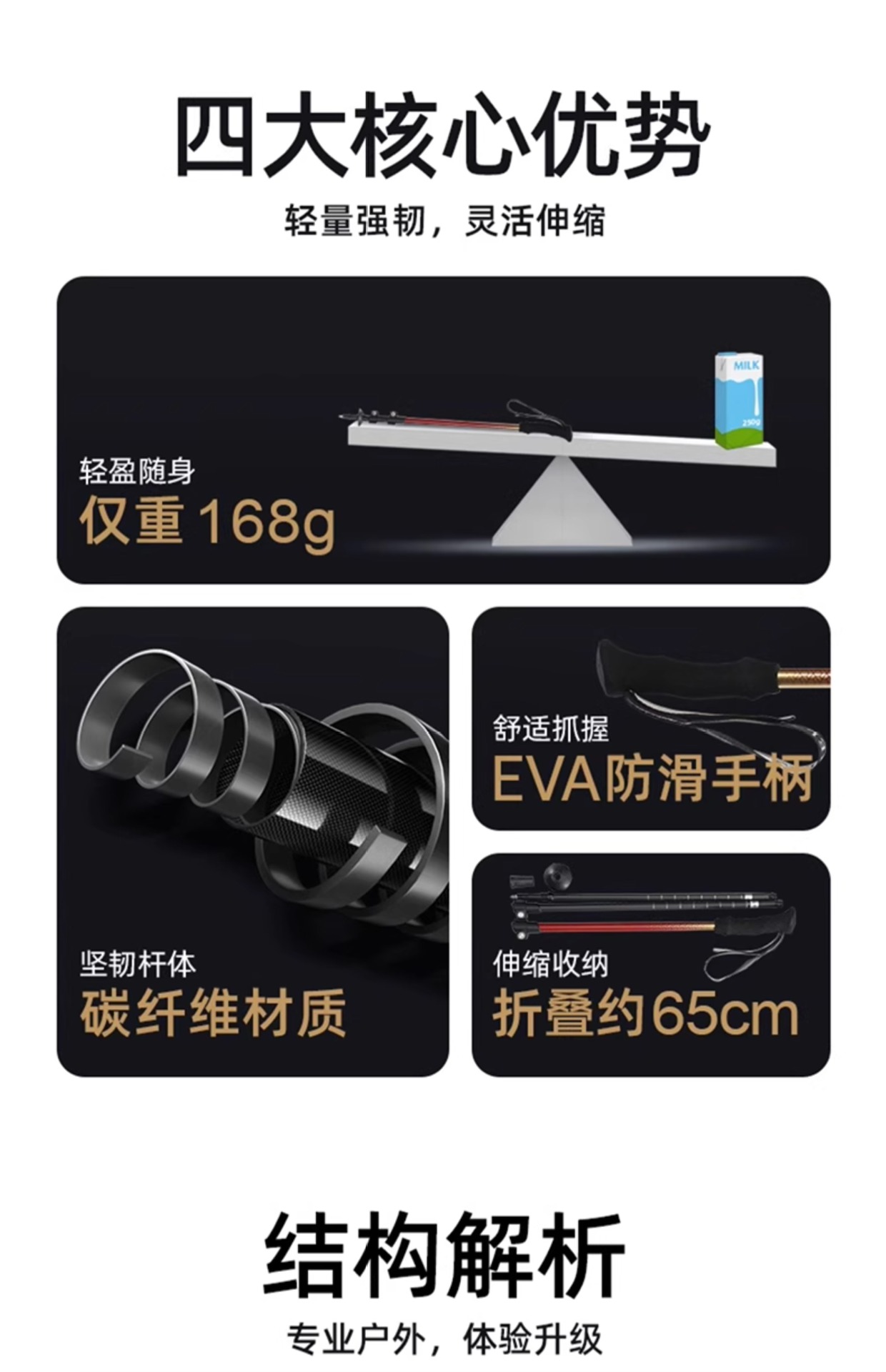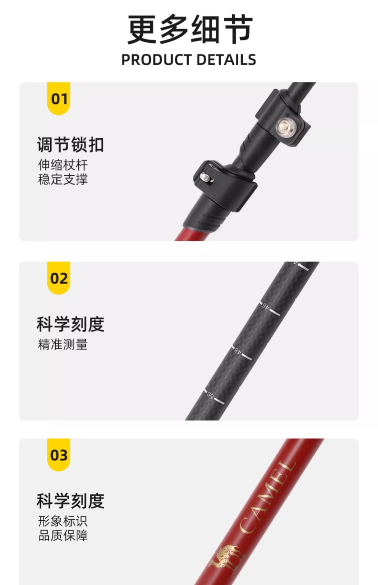 카멜 트레킹 스틱 탄소 섬유 하이킹 스틱 접이식 야외 등산 탄소 경량 확장형 경량 도매스토어 가기