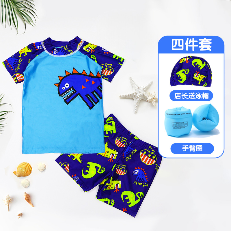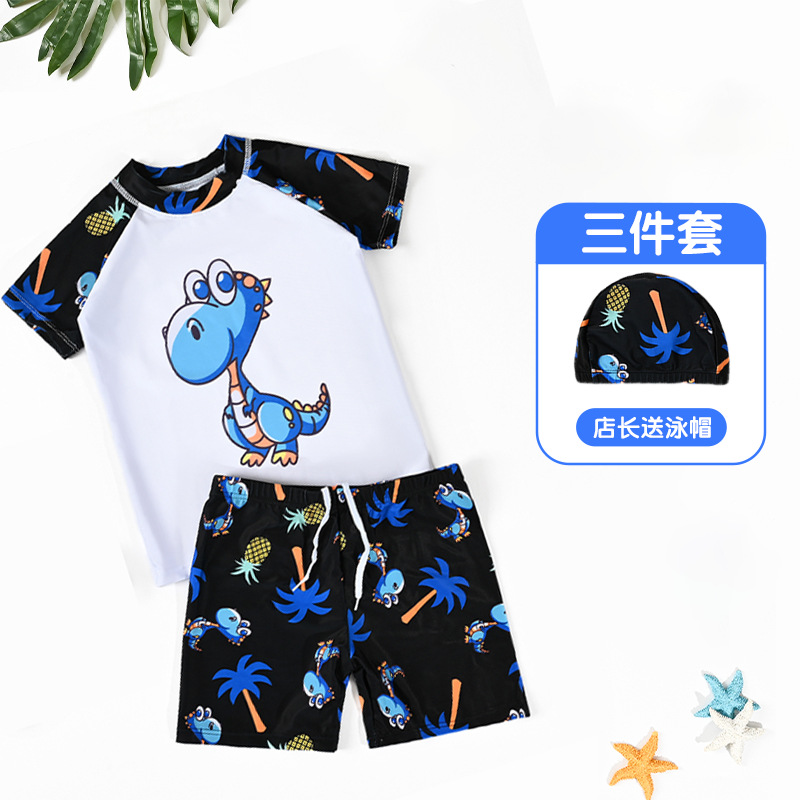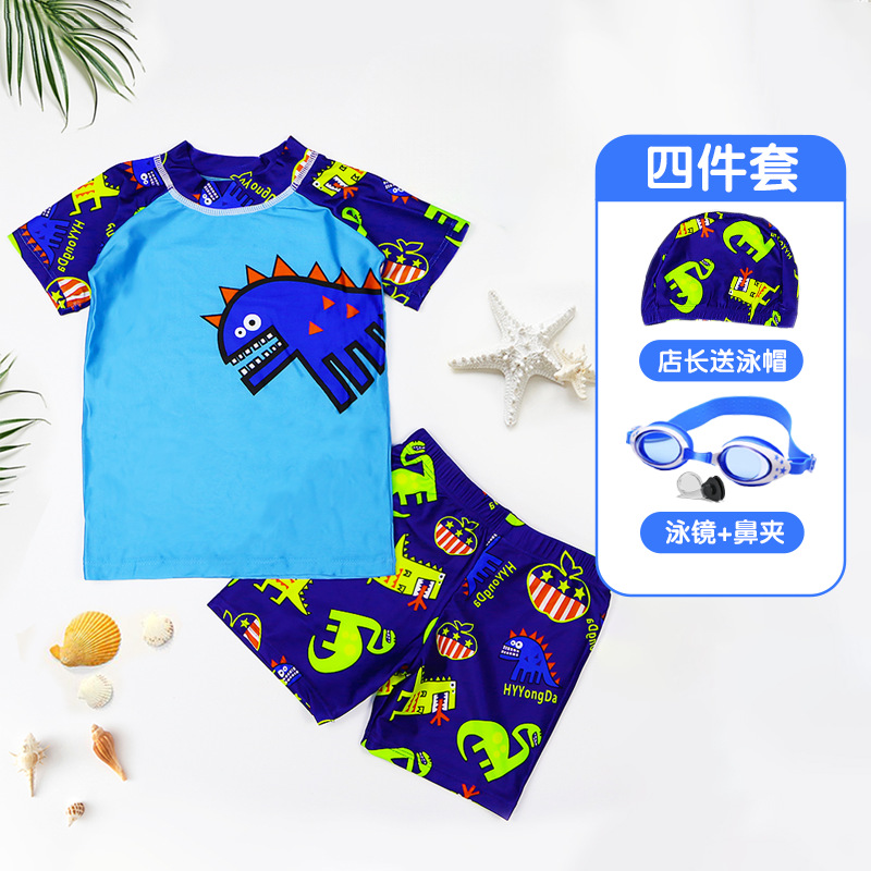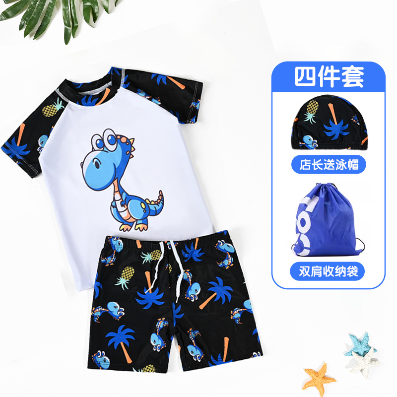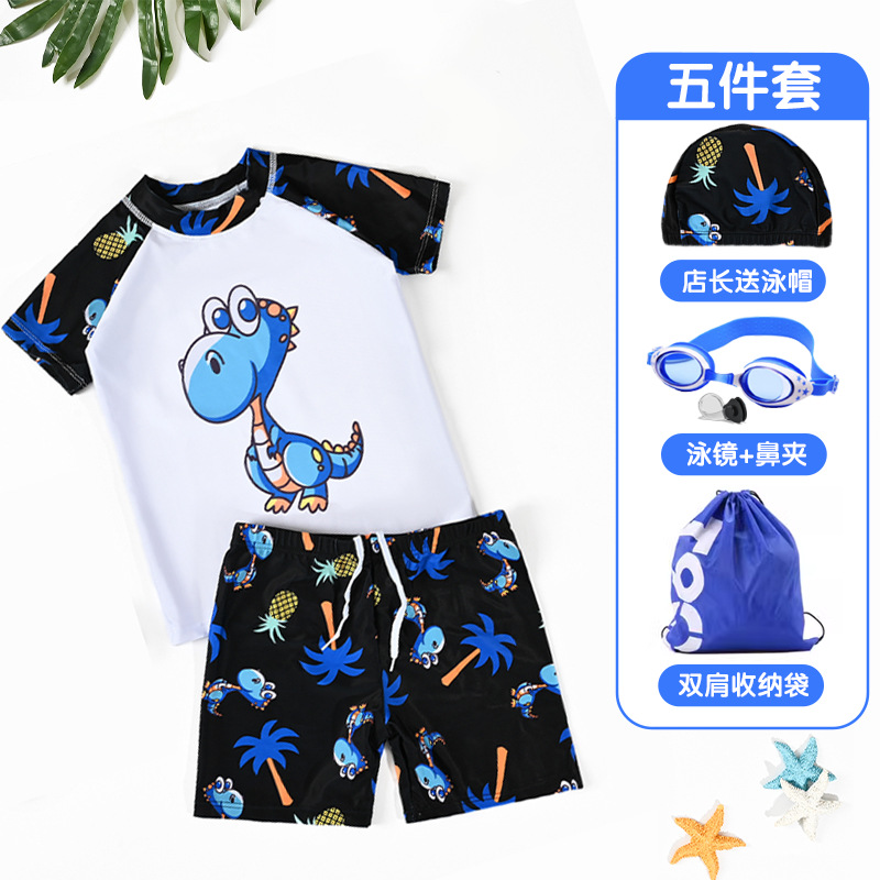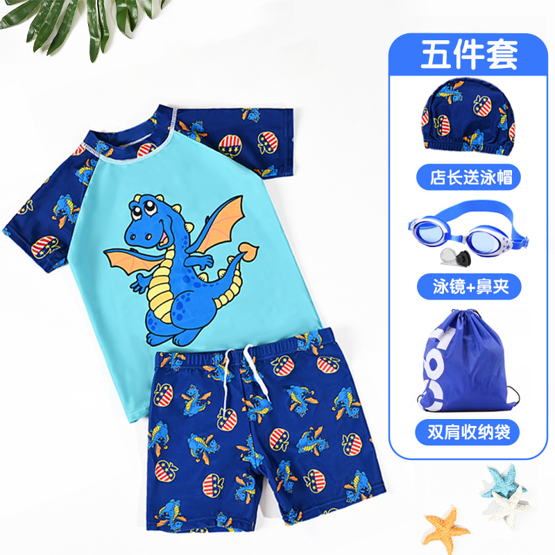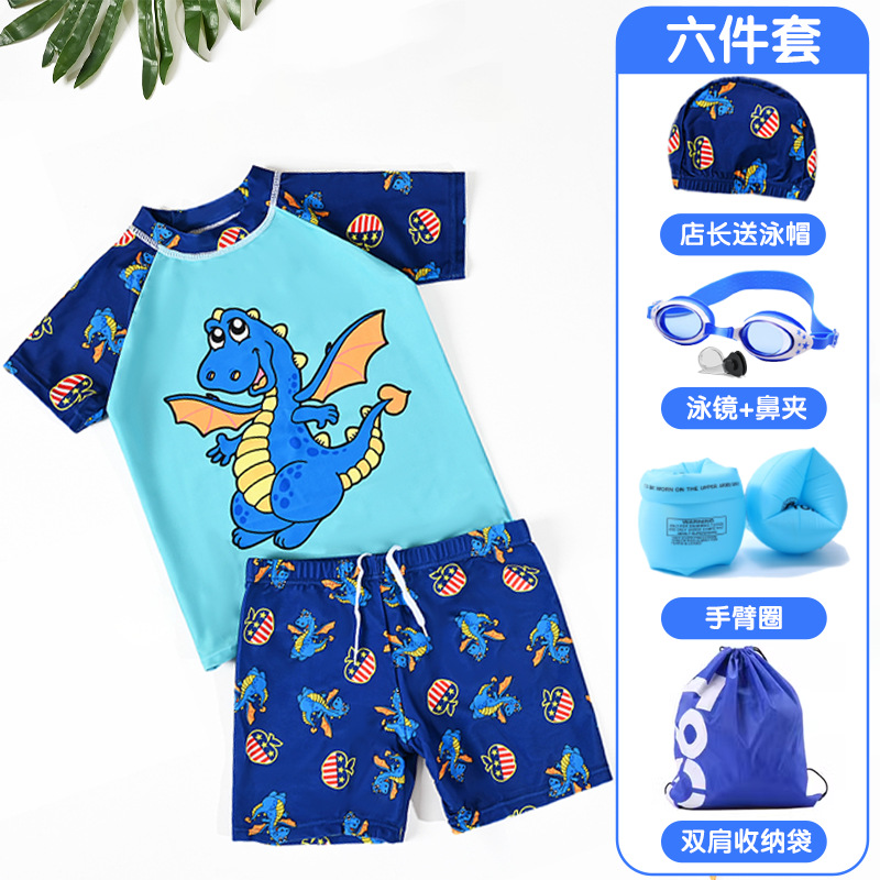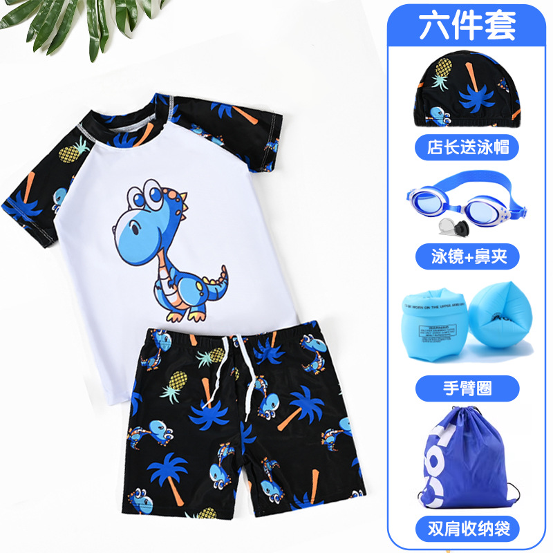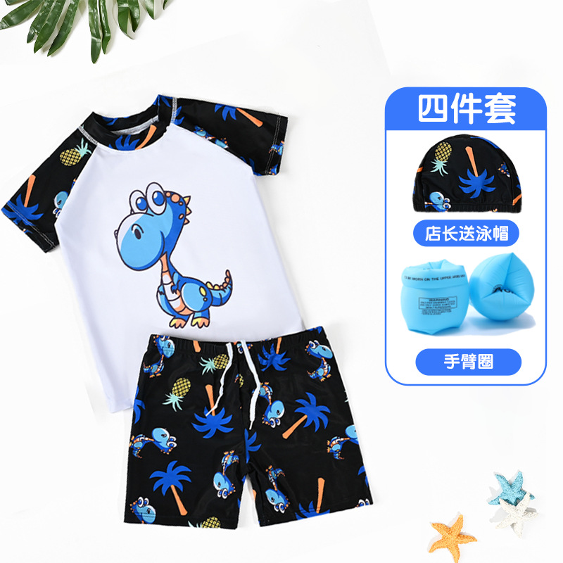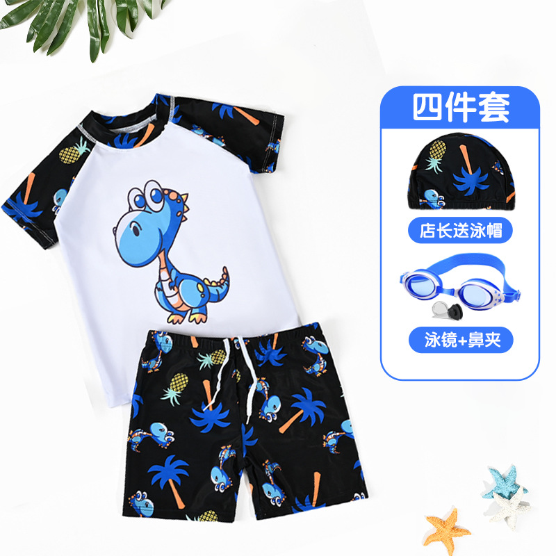 소년 수영복 속건성 통기성 스플릿 수영복 귀여운 만화 코코넛 트리 드래곤 패턴 팔 서클 수영 고글 세트스토어 가기