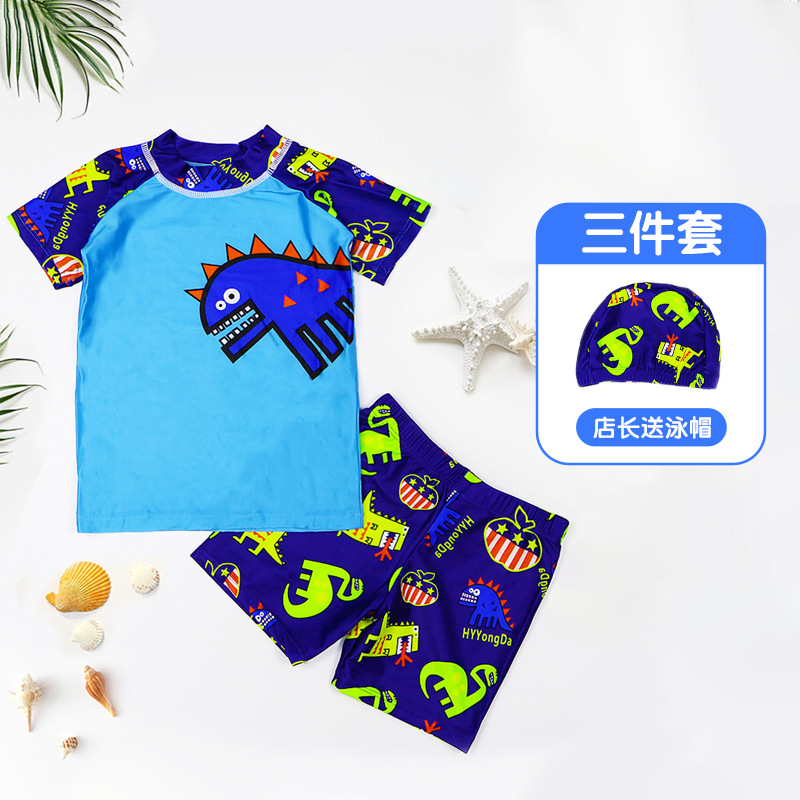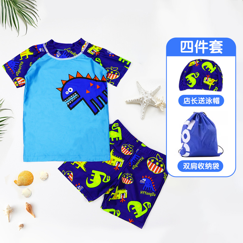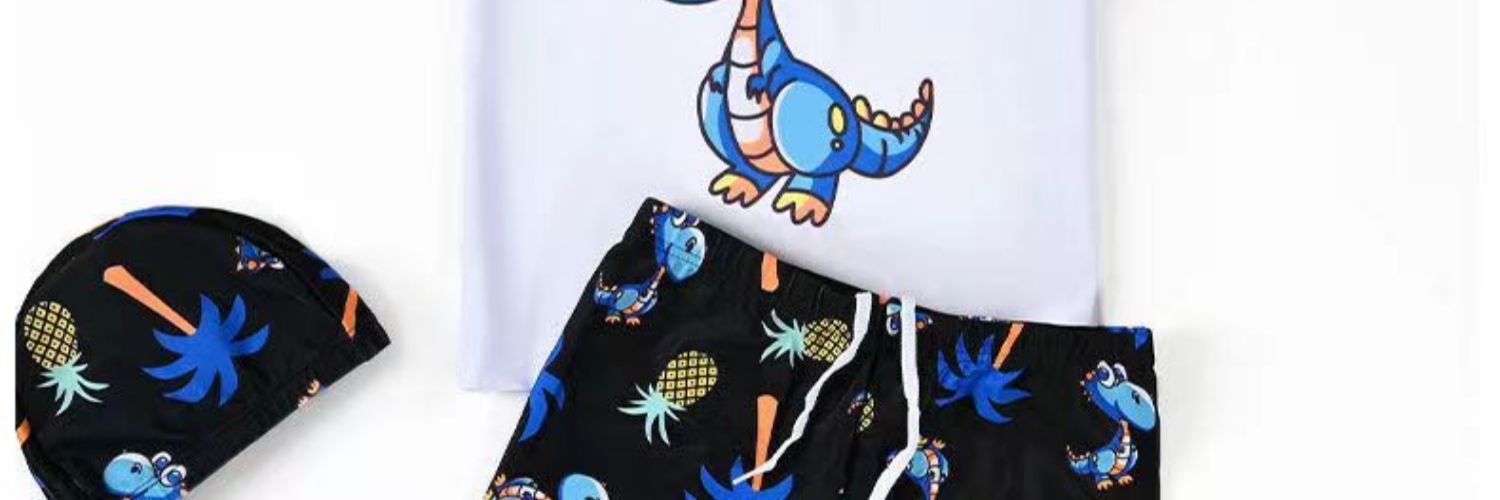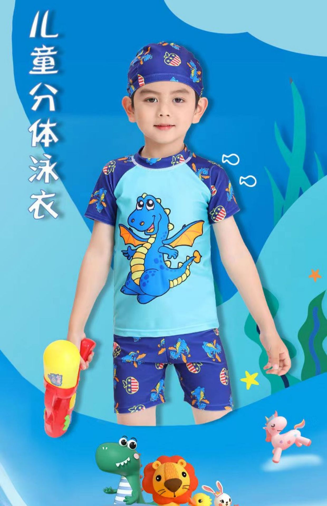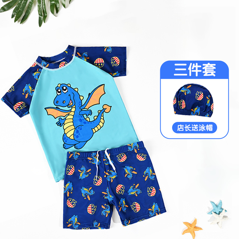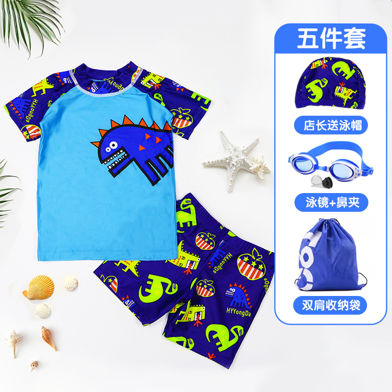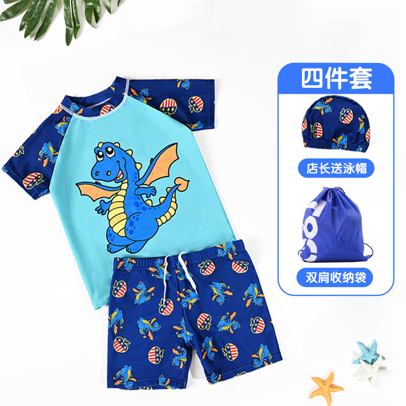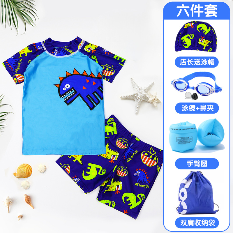 소년 수영복 속건성 통기성 스플릿 수영복 귀여운 만화 코코넛 트리 드래곤 패턴 팔 서클 수영 고글 세트스토어 가기
