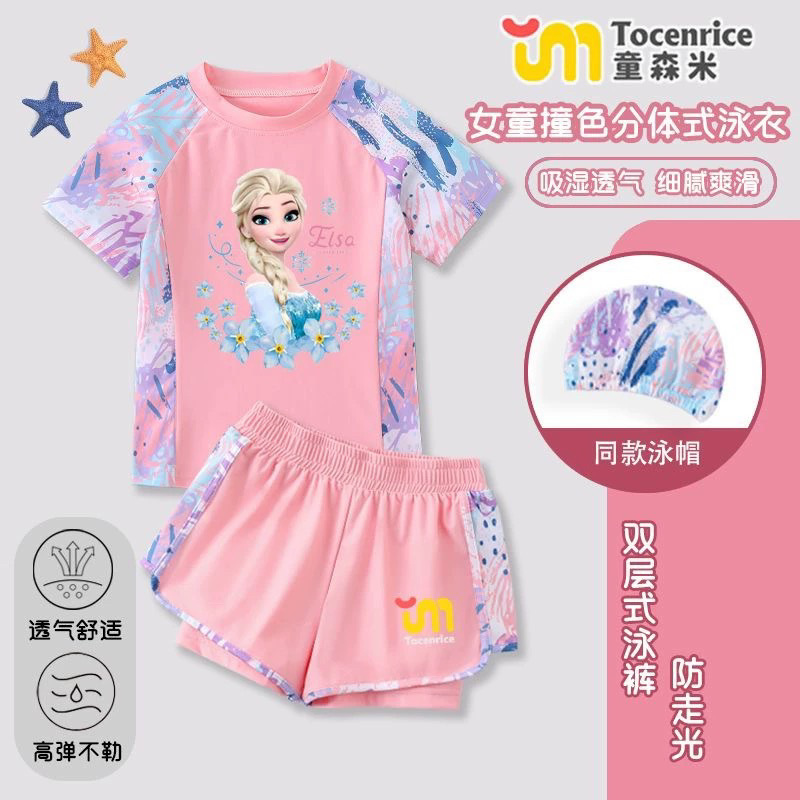 2025 새로운 여름 샤이 공주 소녀 수영복 세트 어린이 수영복 아기 소녀 태양 보호 속건성 스플릿 뷰티