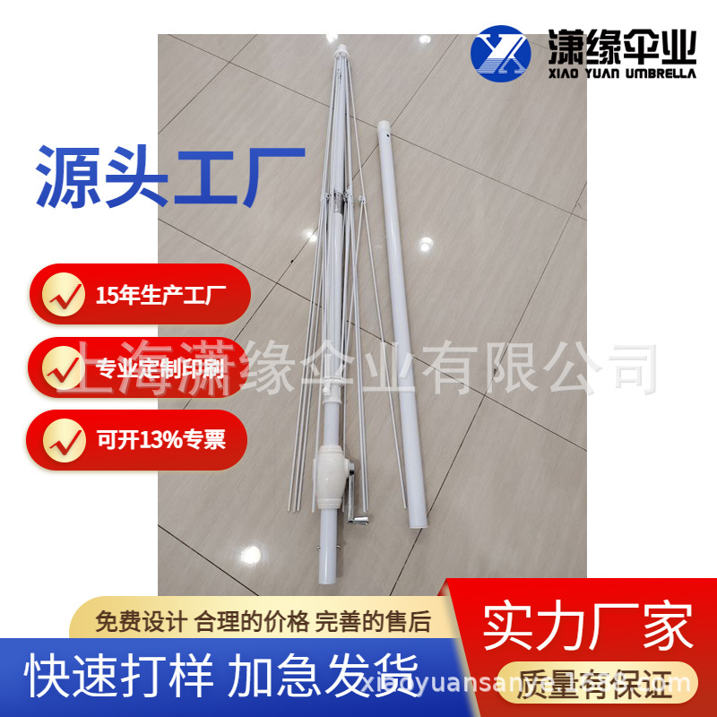 上海潇缘伞业有限公司成立于2010年,是一家专业从事伞具设计、生产和销售的生产制造型企业。公司主要产品包括伞骨架、各类晴雨伞、沙滩伞、庭院伞、广告伞、礼品伞、天幕和帐篷等多种类型的雨具和遮阳用品,公司产品广泛应用于户外休闲、日常生活、户外活动、商业宣传等场景。公司注重产品质量和创新设计,致力于为客户提供高品质的伞具产品和定制服务。