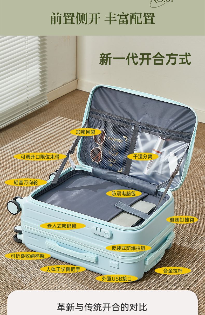 대용량 여행가방 다기능 측면 플립형 트롤리 케이스 트롤리 케이스 딥 웨이브 비밀번호 케이스 20인치 24inch 26inch스토어 가기