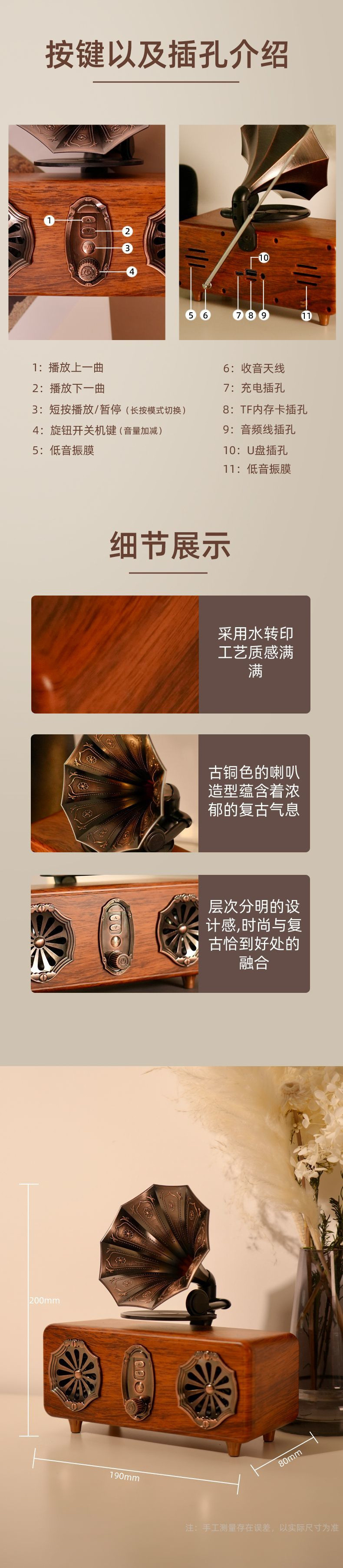 • [축음기 레트로 오디오] 블루투스/라디오/카드/유선
