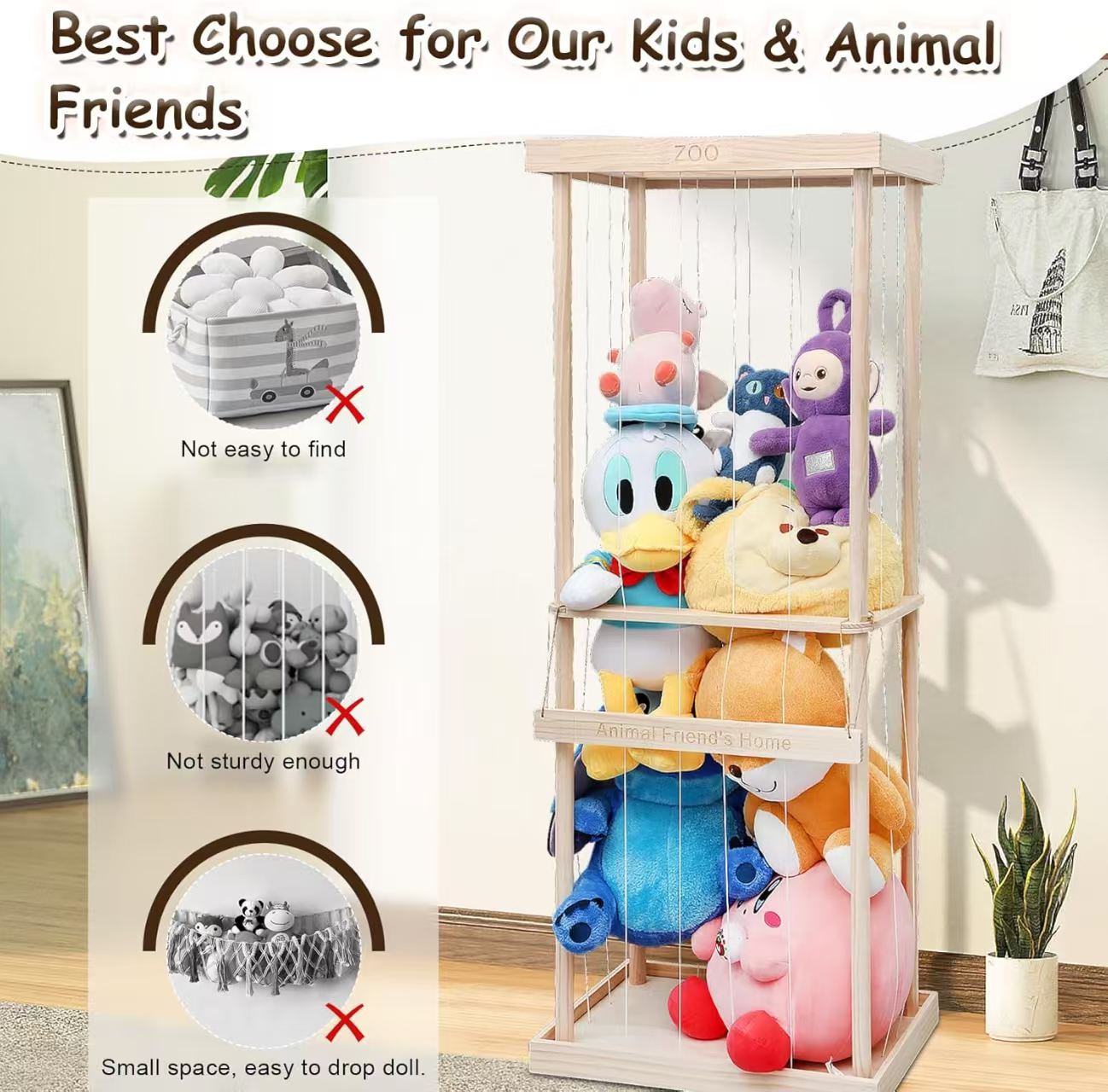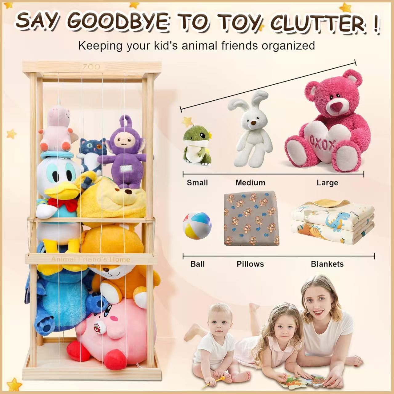 나무 장난감 수납 선반 대용량 어린이 인형 정리대 거실 바닥형 봉제인형 수납 선반스토어 가기