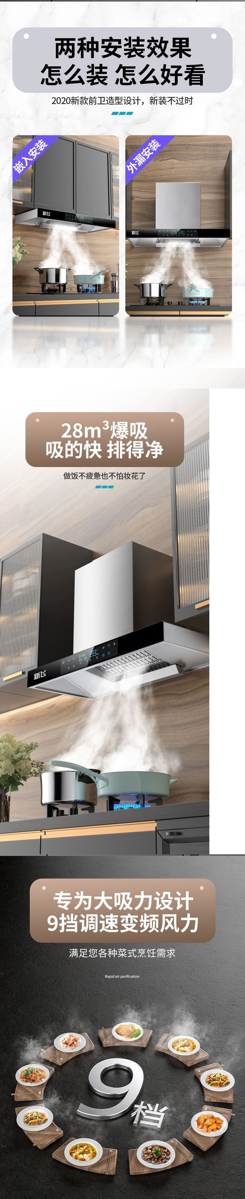 레인지 후드 T자형 상단 흡입 레인지 후드 가정용 주방 벽걸이형 대형 흡입 Xinfei 자동 청소 지능형 주파수 변환스토어 가기