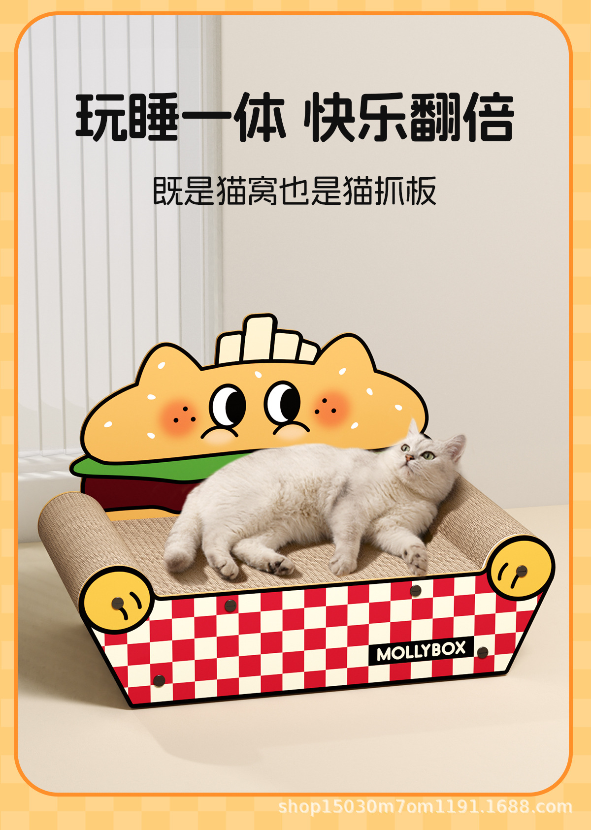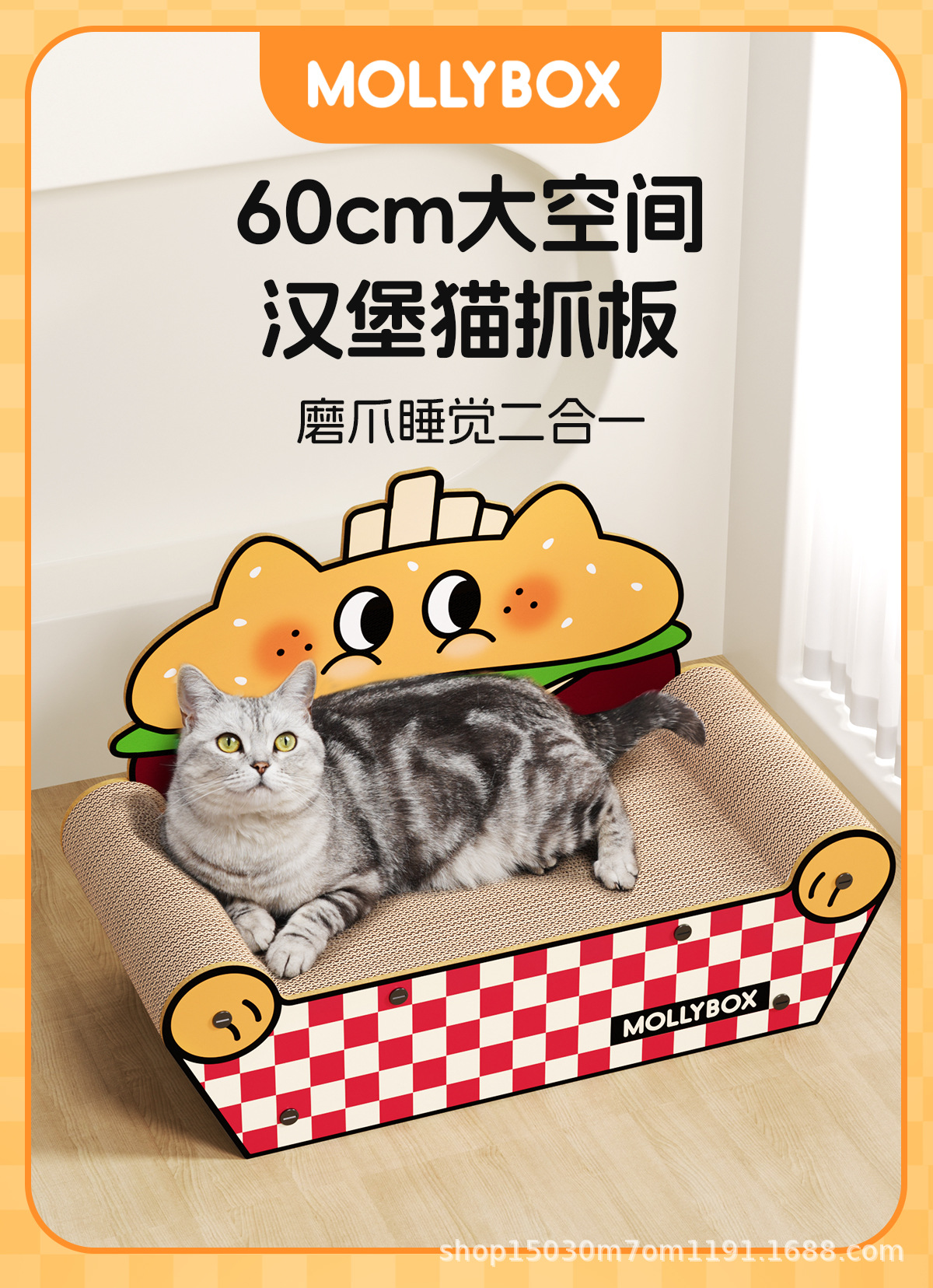 고양이 스크래치 보드와 둥지가 하나로 통합되어 내마모성, 긁힘 방지 및 부스러기 없음 대형 골판지 스크래치 고양이 소파 클로 보드 상자 고양이 용품스토어 가기