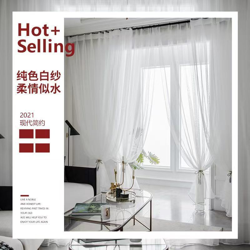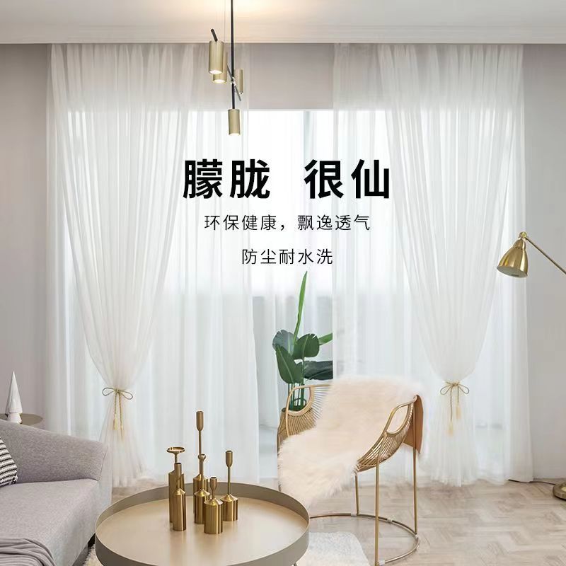 창문 스크린 특가 완제품 흰색 거즈 클리어런스 베드룸 거실 투광 간단한 커튼 거즈 커튼 초경량