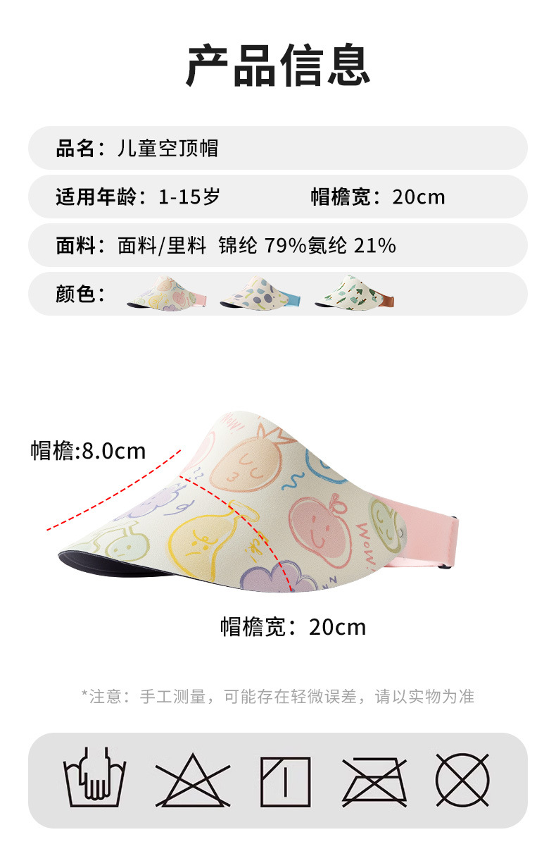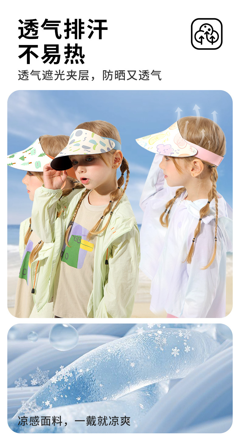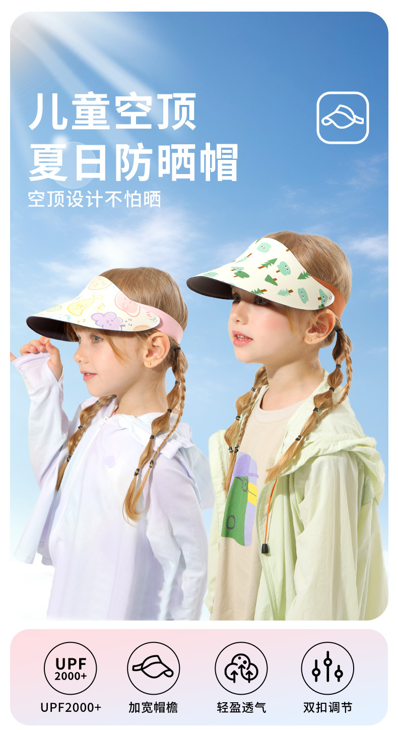 어린이용 빈 모자, 여름 자외선 방지 트레이스리스 모자, 소년 소녀용 조절 가능한 태양 모자, 스포츠 자외선 차단 모자