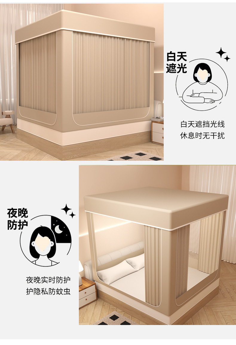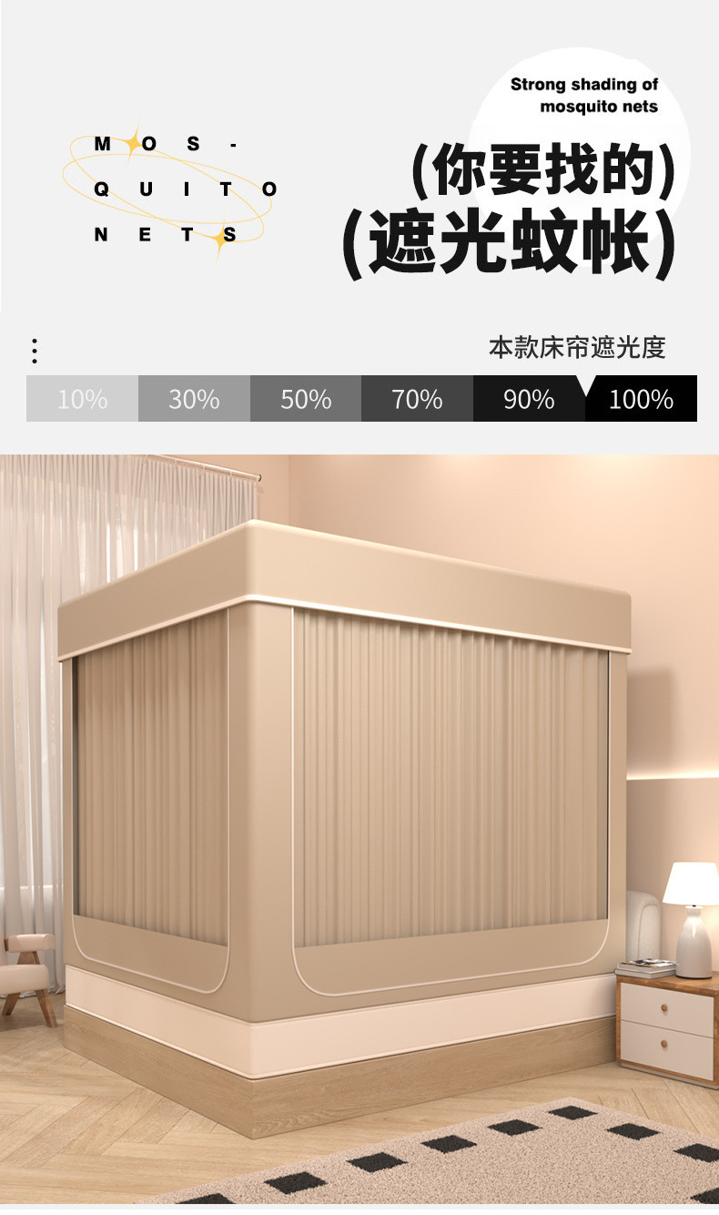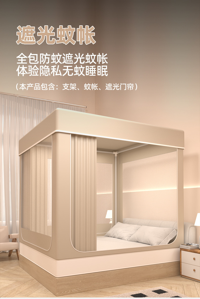 2025 새로운 차광 및 방진 모기장 침대 커튼 아기 낙하 방지 일체형 브래킷 1.5m 완전 밀폐형 지퍼스토어 가기