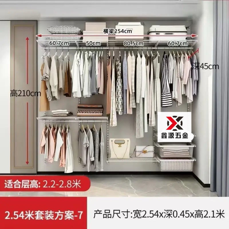 개방형 금속 옷장, 옷장, 침실 옷장, 벽 그리드 조립, 창고 벽걸이