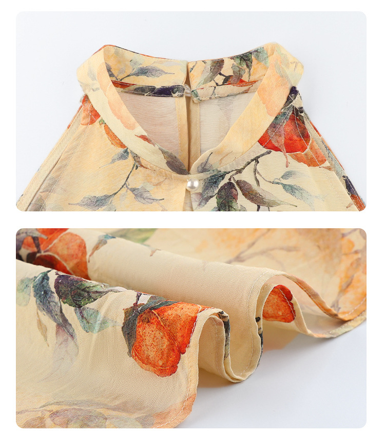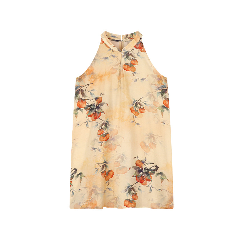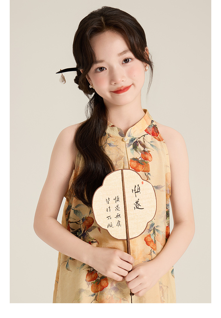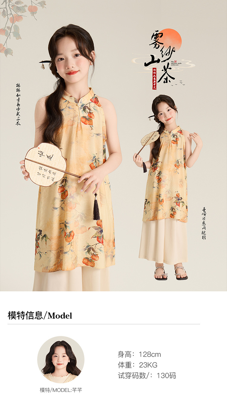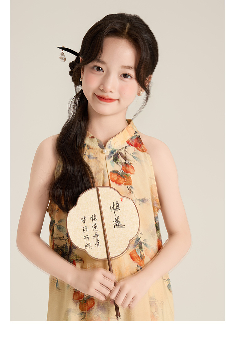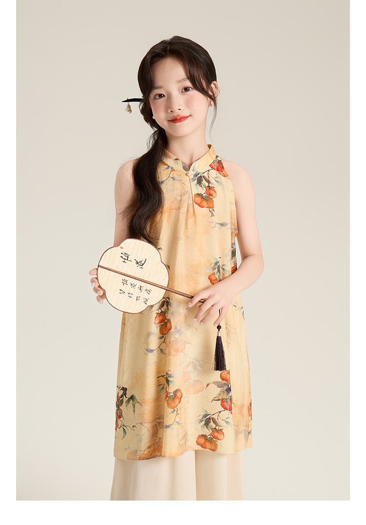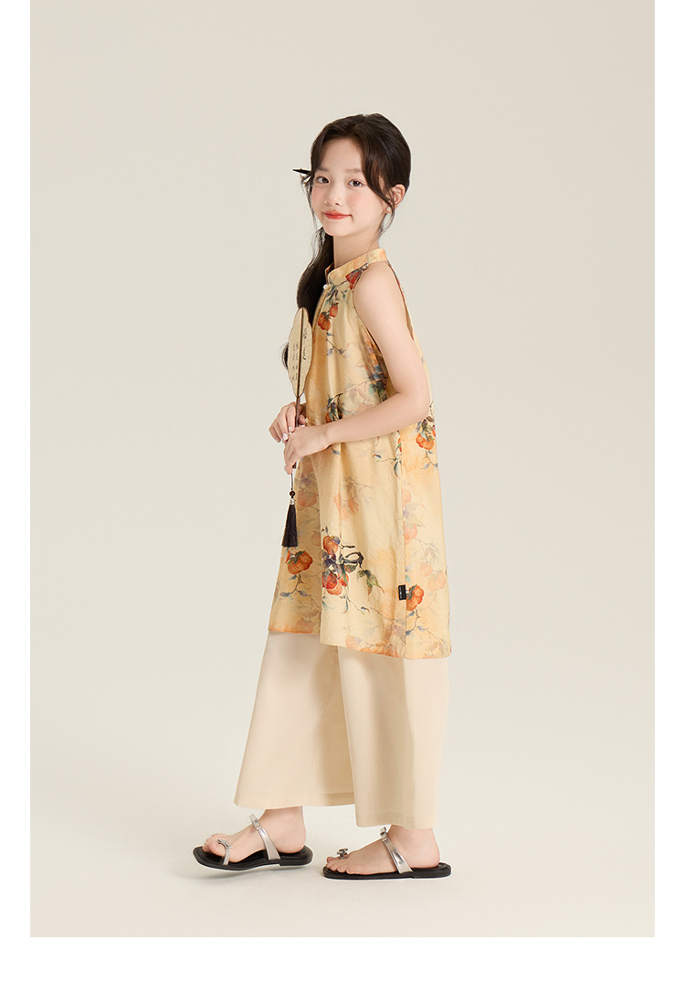 Amybaby 여아 정장 여름 2025 새로운 중국 스타일 복고풍 민소매 홀터넥 꽃무늬 스커트 9부 와이드 팬츠스토어 가기