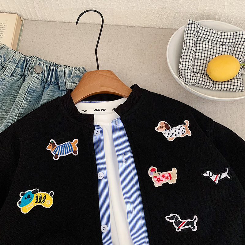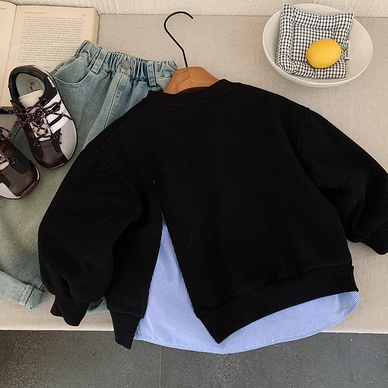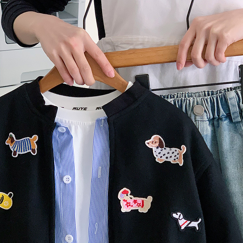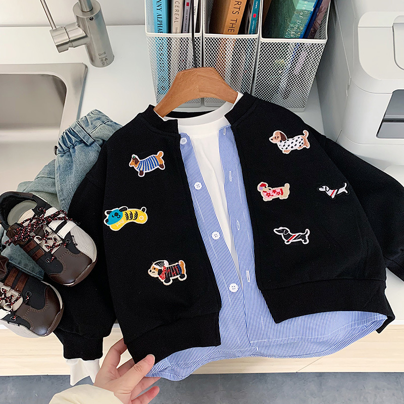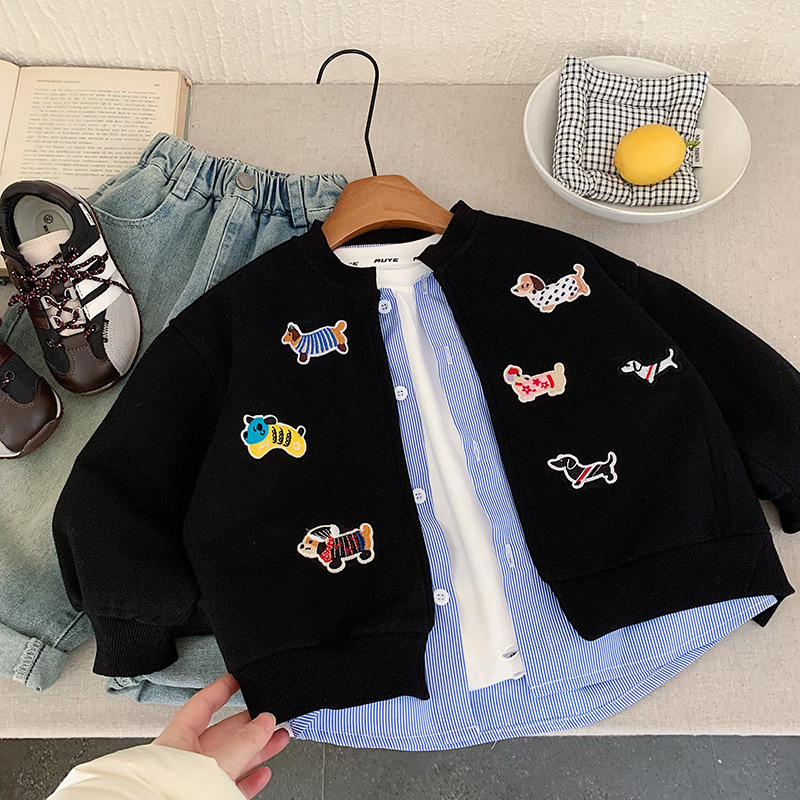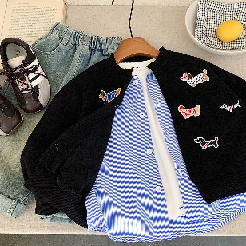 재고 있음 가을 코트 2025 소년과 소녀를위한 새로운 만화 의류 한국어 버전 느슨한 가짜 투피스 카디건 귀여운상의