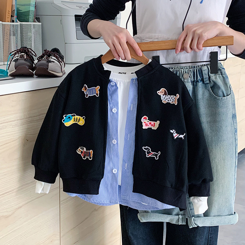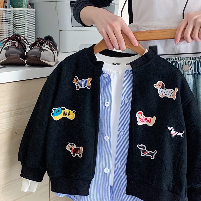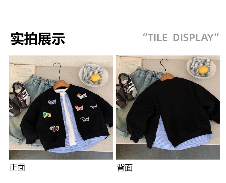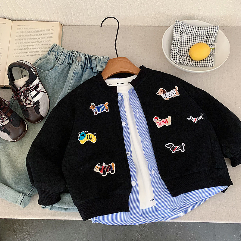 재고 있음 가을 코트 2025 소년과 소녀를위한 새로운 만화 의류 한국어 버전 느슨한 가짜 투피스 카디건 귀여운상의스토어 가기