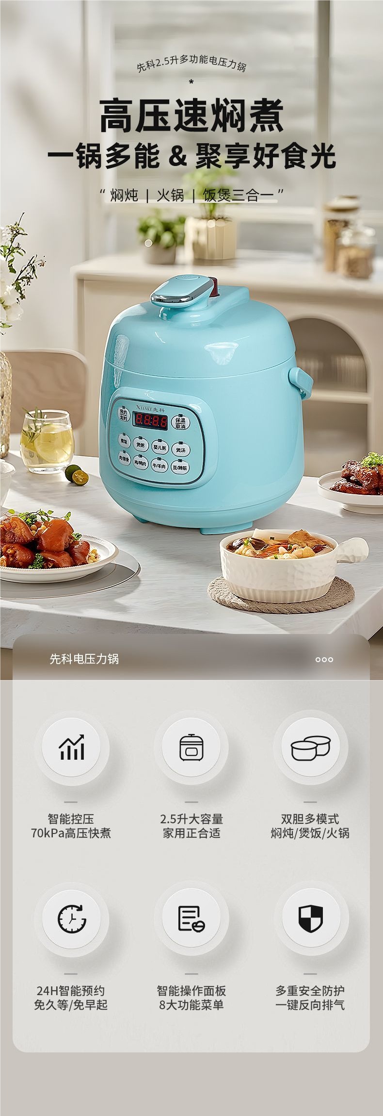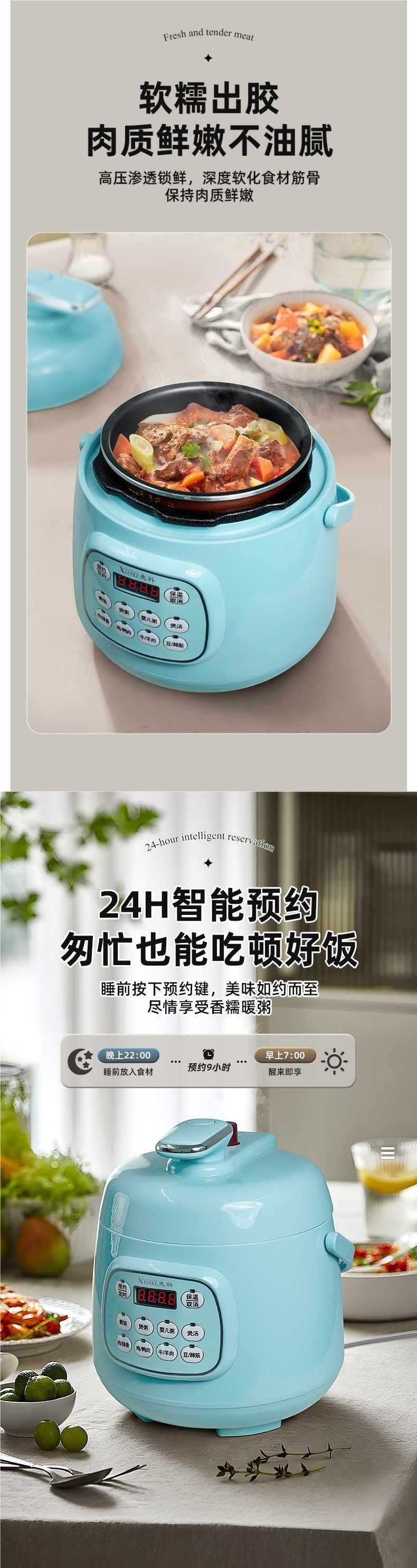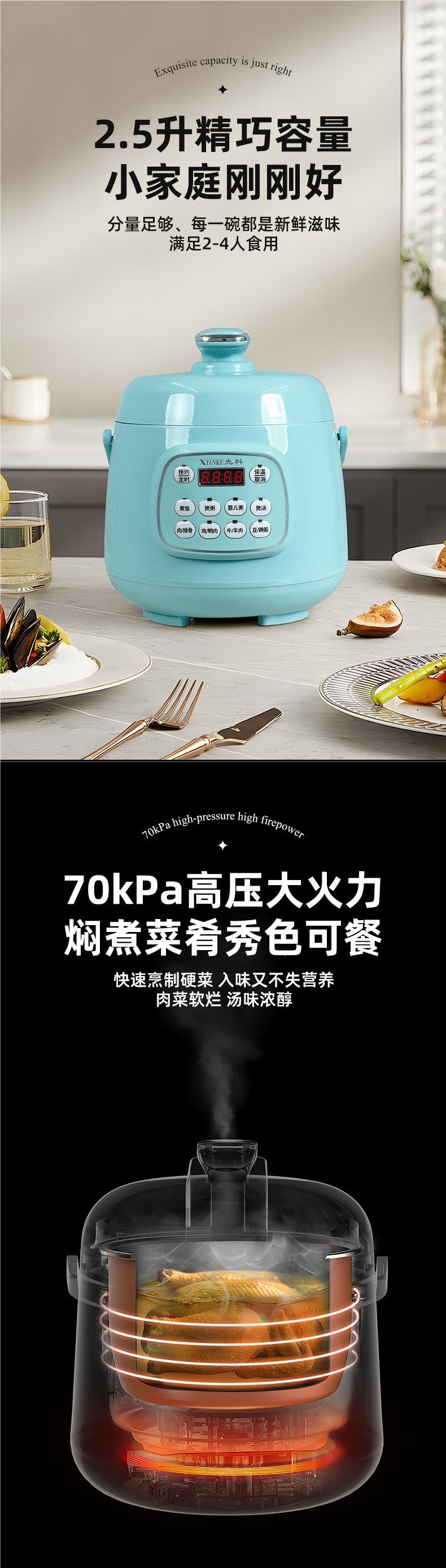 Xianke 전기 압력 밥솥 가정용 미니 예약 완전 자동 이중 객실 지능형 조리 밥솥 다기능 압력 밥솥