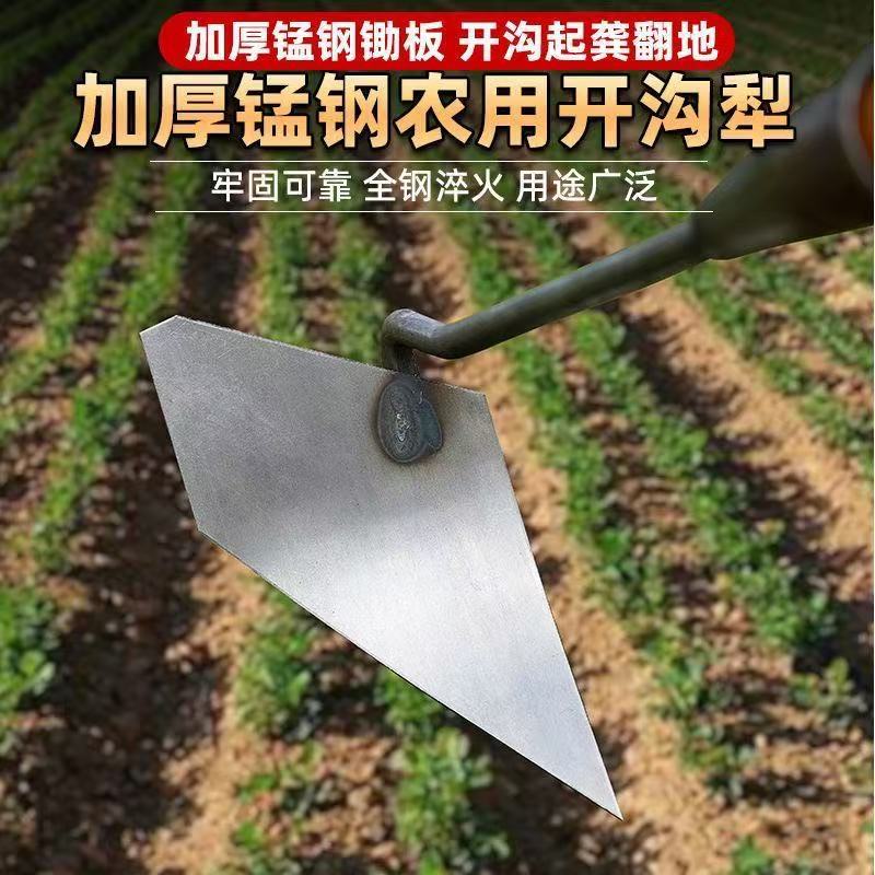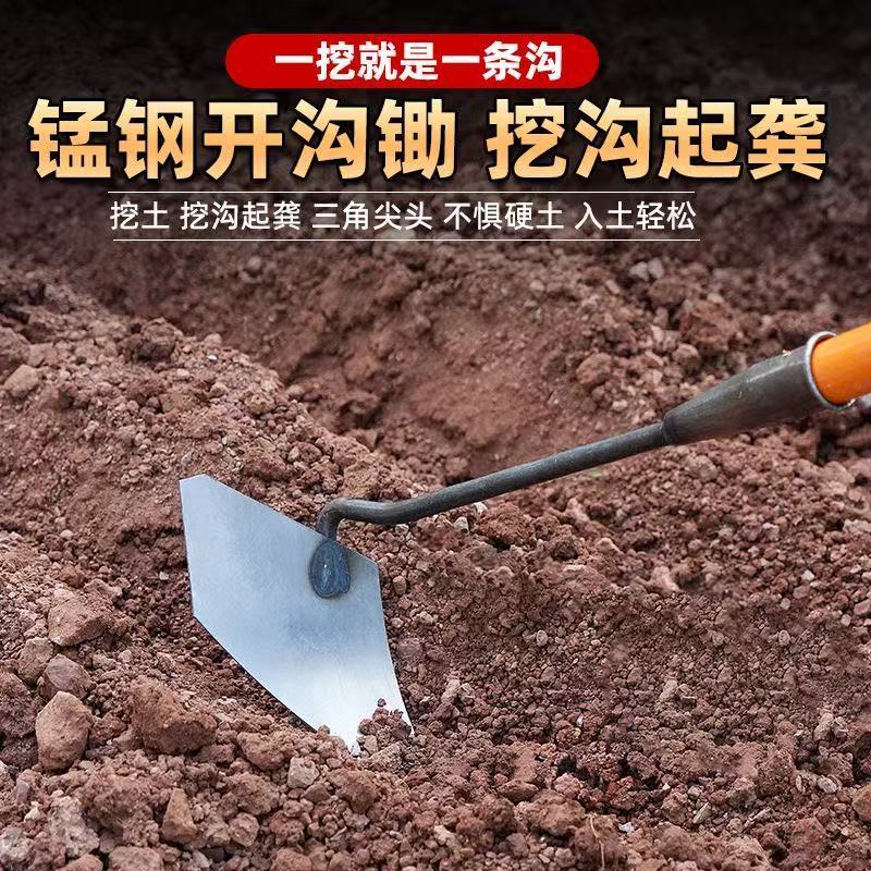 토양을 뒤집고 뒤집어주는 수동식 휘어진 쟁기, 두꺼운 망간강 삼각형 괭이, 흙을 풀어주는 농업용 채소 파기 및 배토 도구