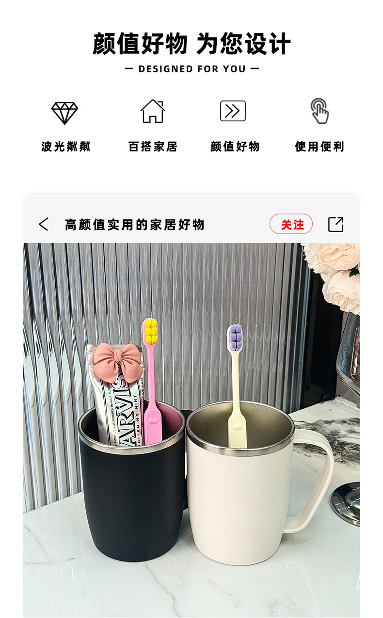 스테인레스 구강청결제 컵, 손잡이가 있는 고급형 가벼운 럭셔리 칫솔 컵, 가정용 세면컵, 치과용 컵, 간이 구강청결제 컵스토어 가기