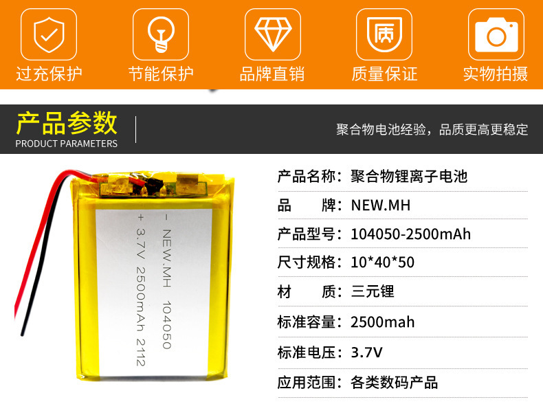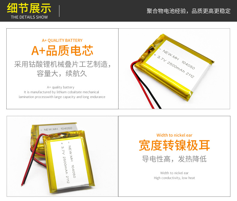 104050-2500mah 가열 장갑 가열 양말 따뜻한 가열 신발 배터리