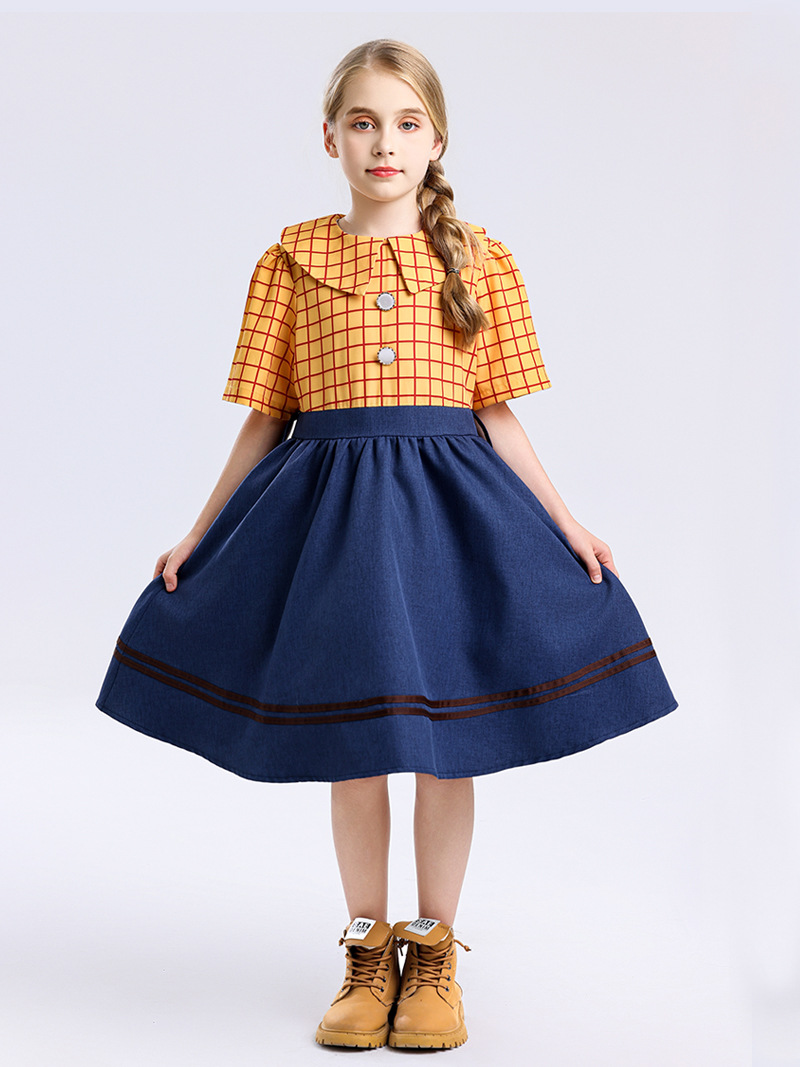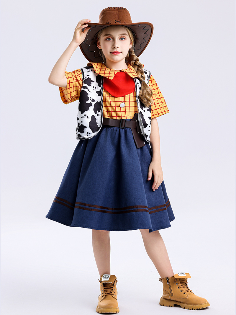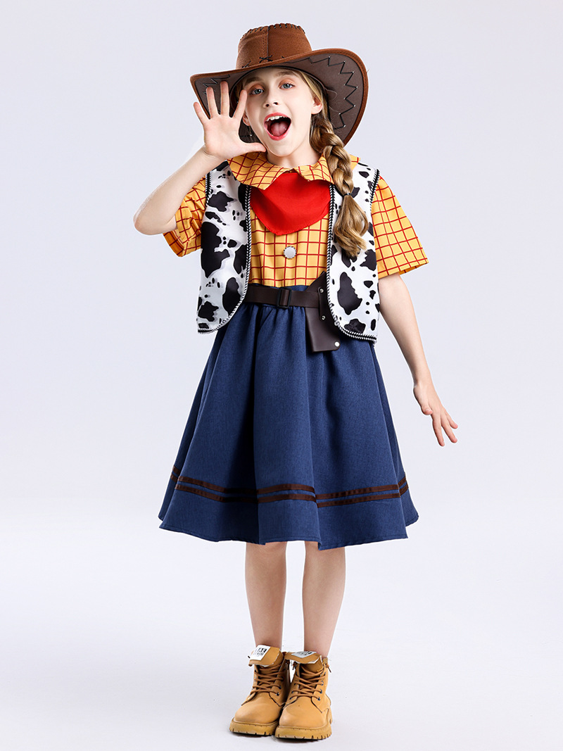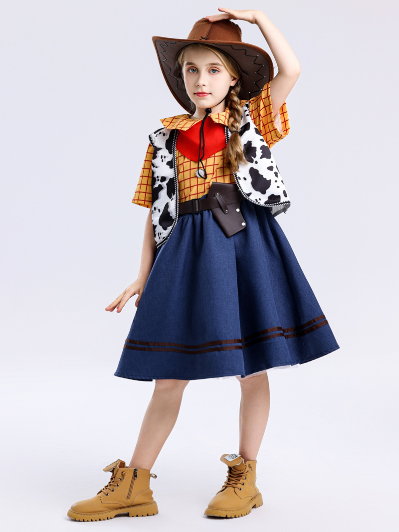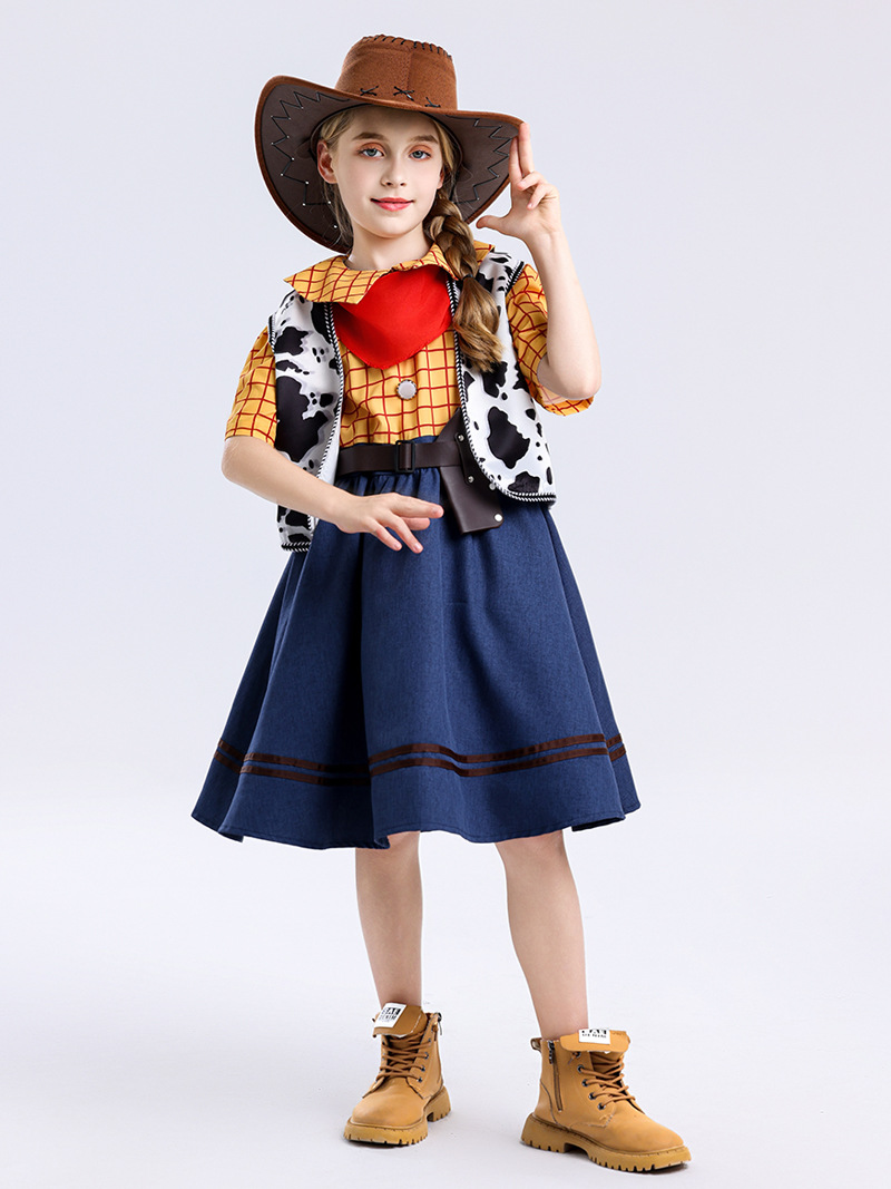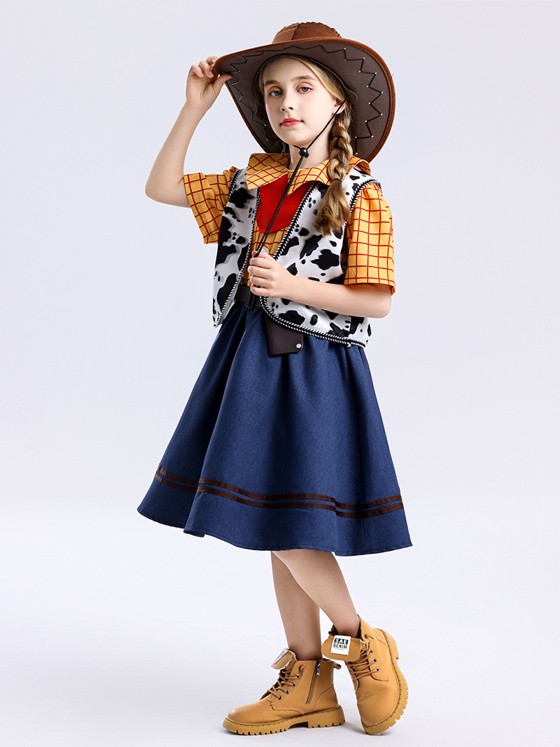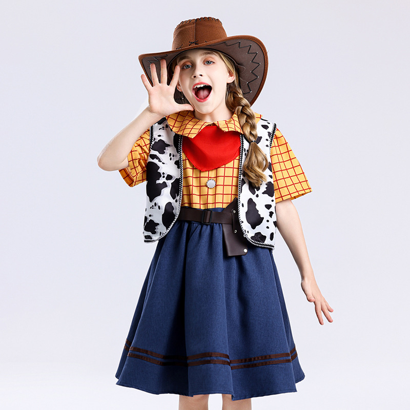 국경 간 미국 스타일 서양 카우보이 cos 소녀 스커트 우디 드레스 여성 여름 어린이 영화 코스프레 의상스토어 가기