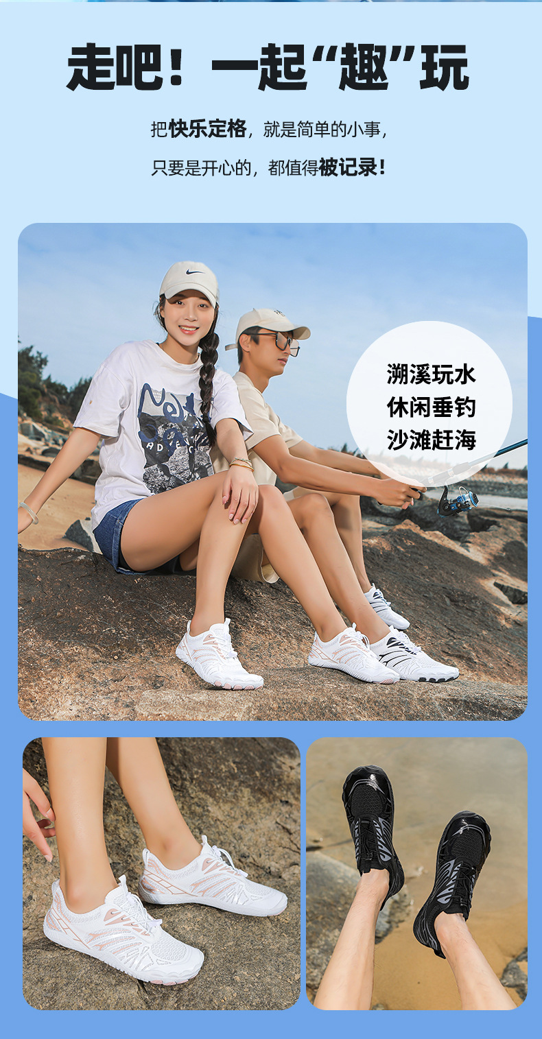 남성용 및 여성용 야외 수영 해변 신발, 속건성 리버 트레이싱 신발, 다섯 손가락 웨이딩 신발, 통기성 피트니스 신발, 남성용 미끄럼 방지 하이킹 신발스토어 가기