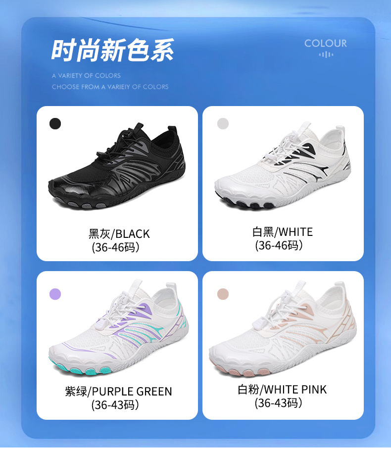 남성용 및 여성용 야외 수영 해변 신발, 속건성 리버 트레이싱 신발, 다섯 손가락 웨이딩 신발, 통기성 피트니스 신발, 남성용 미끄럼 방지 하이킹 신발