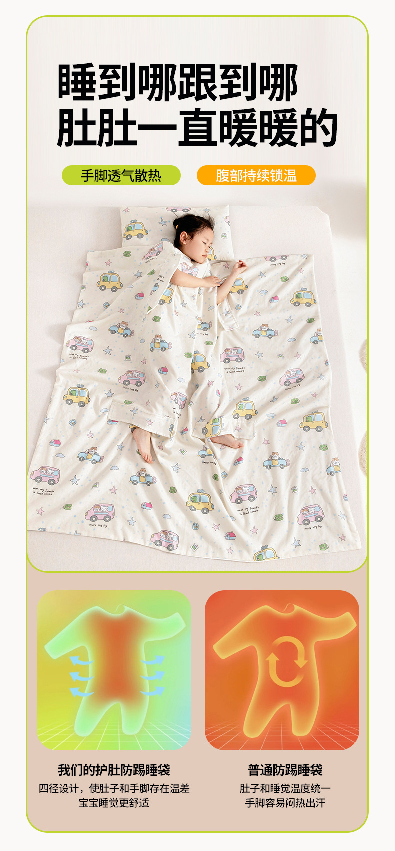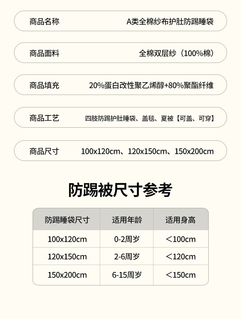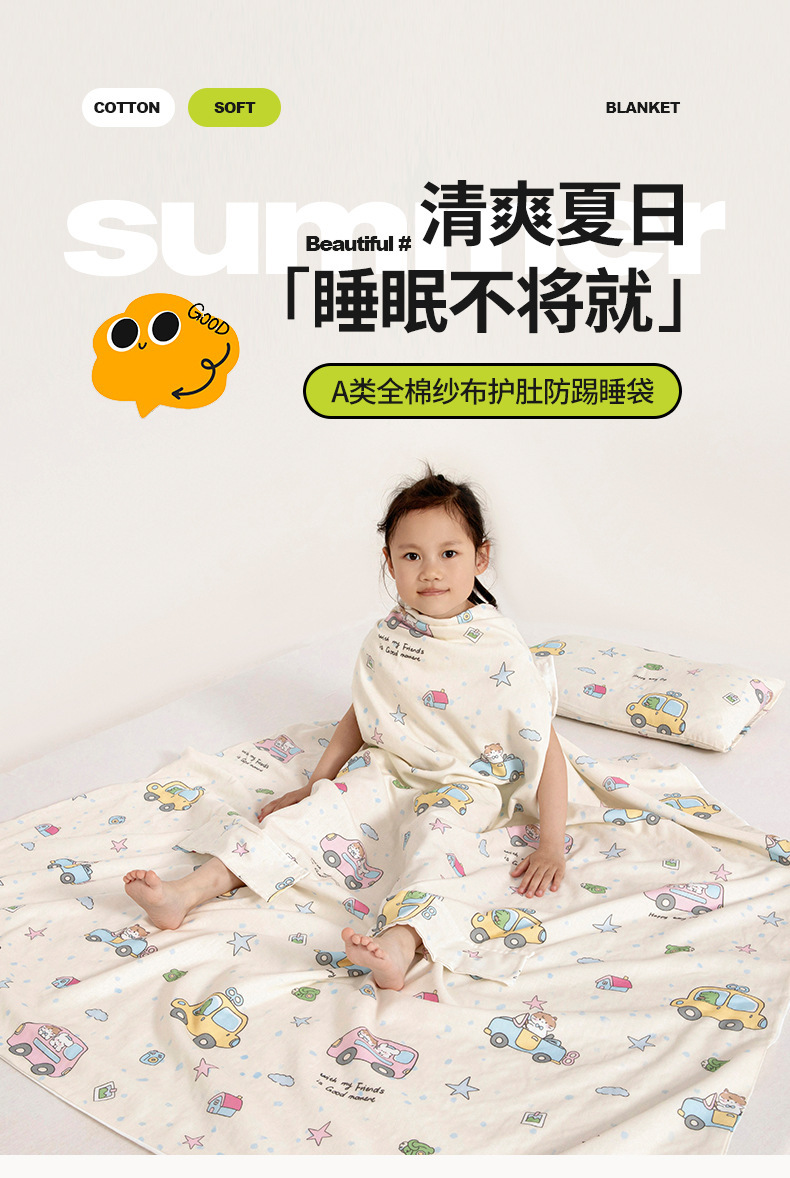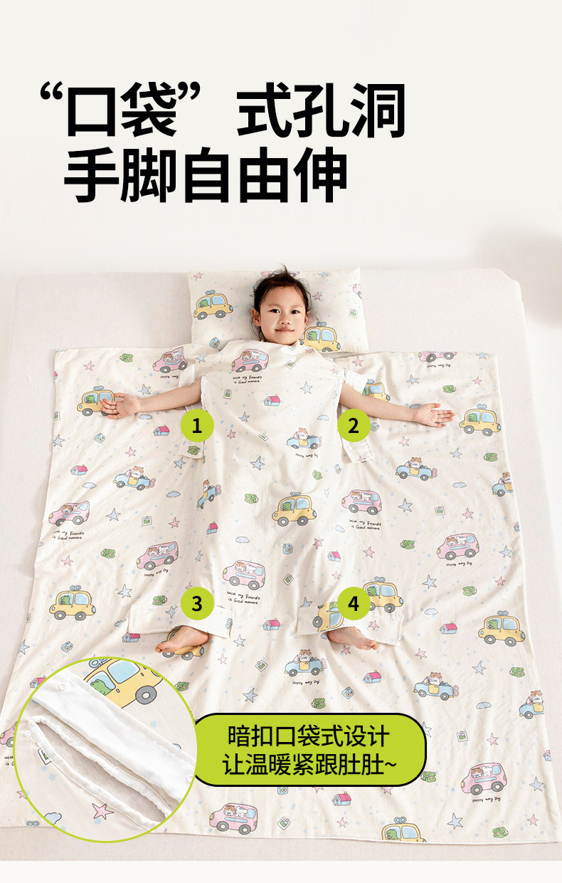 유아용 A급 순면 거즈 발싸개, 가을 겨울용 손발 노출형, 배 보호 수면주머니, 세탁기 사용 가능, 순면 에어컨 이불스토어 가기