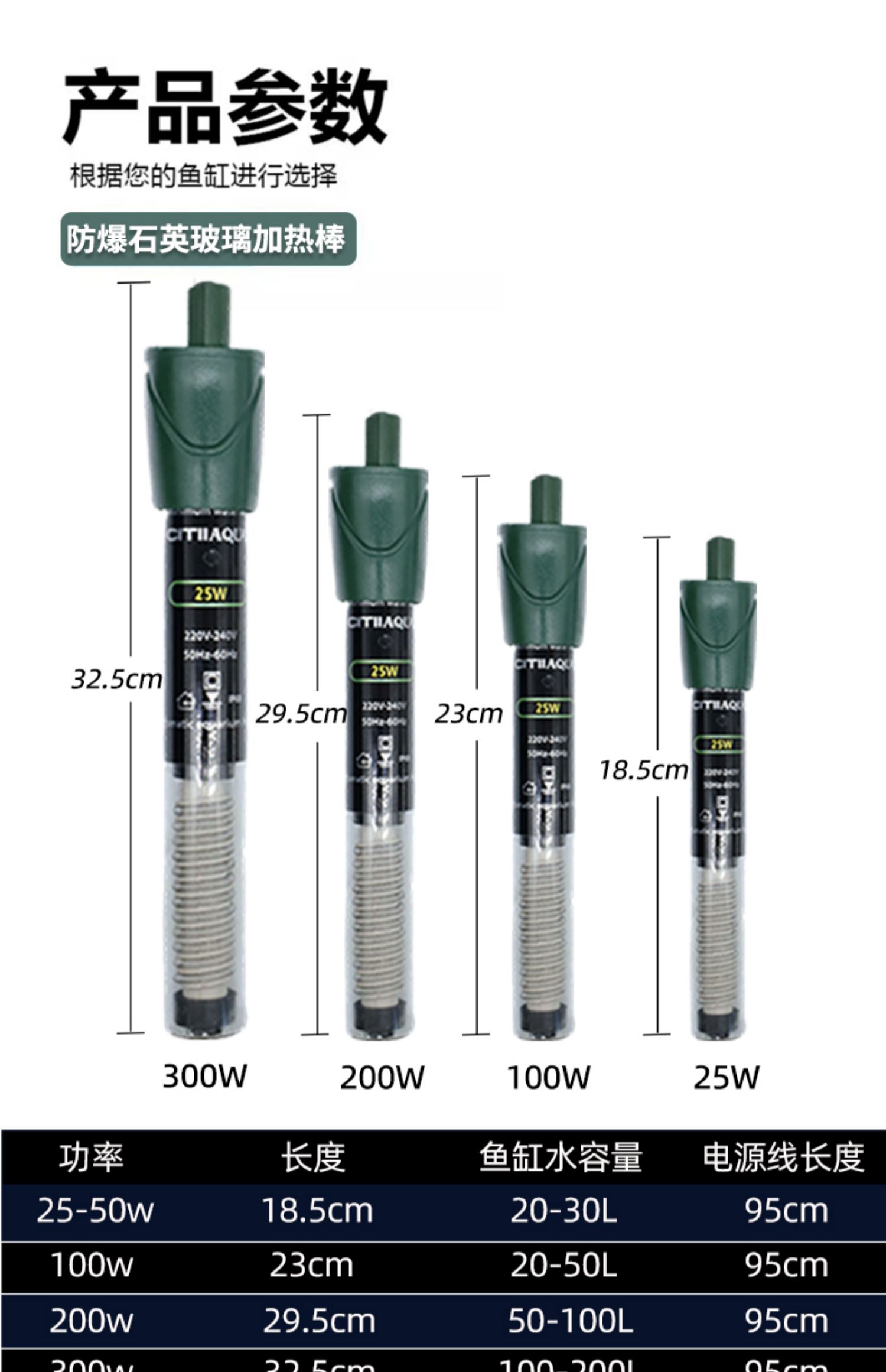 수조 가열 막대 자동 항온 절전 석영 유리 방폭형 수족관 가열 막대 소형 수조 히터