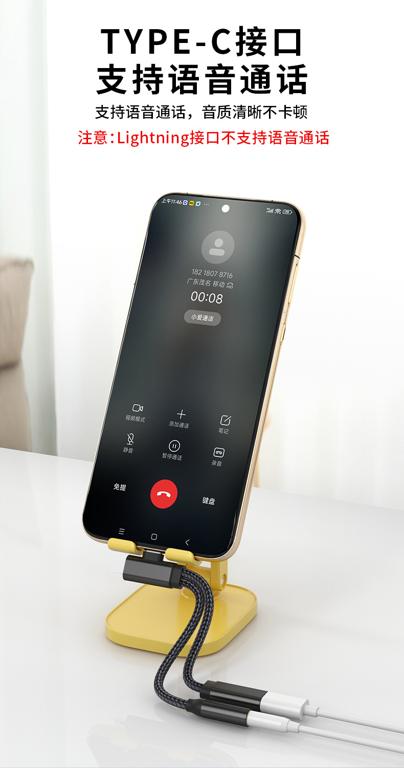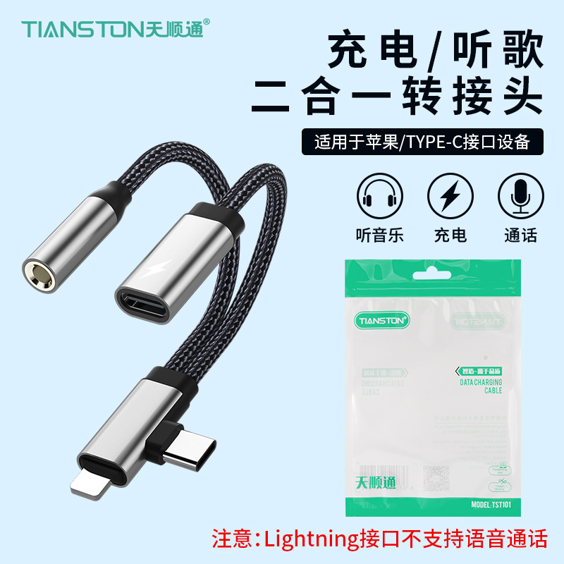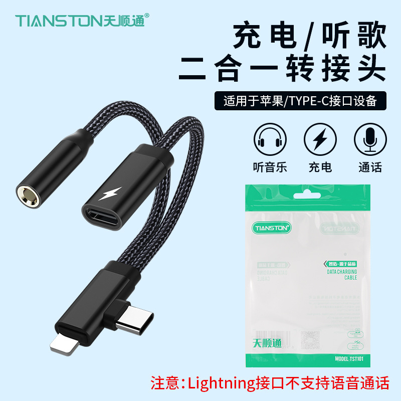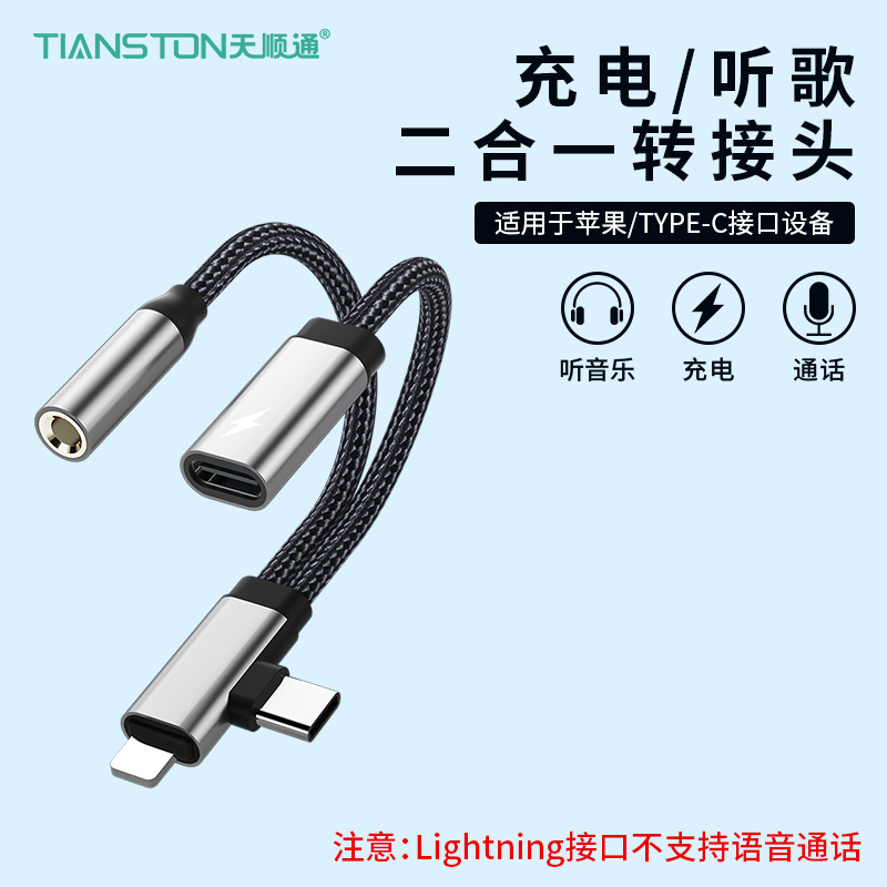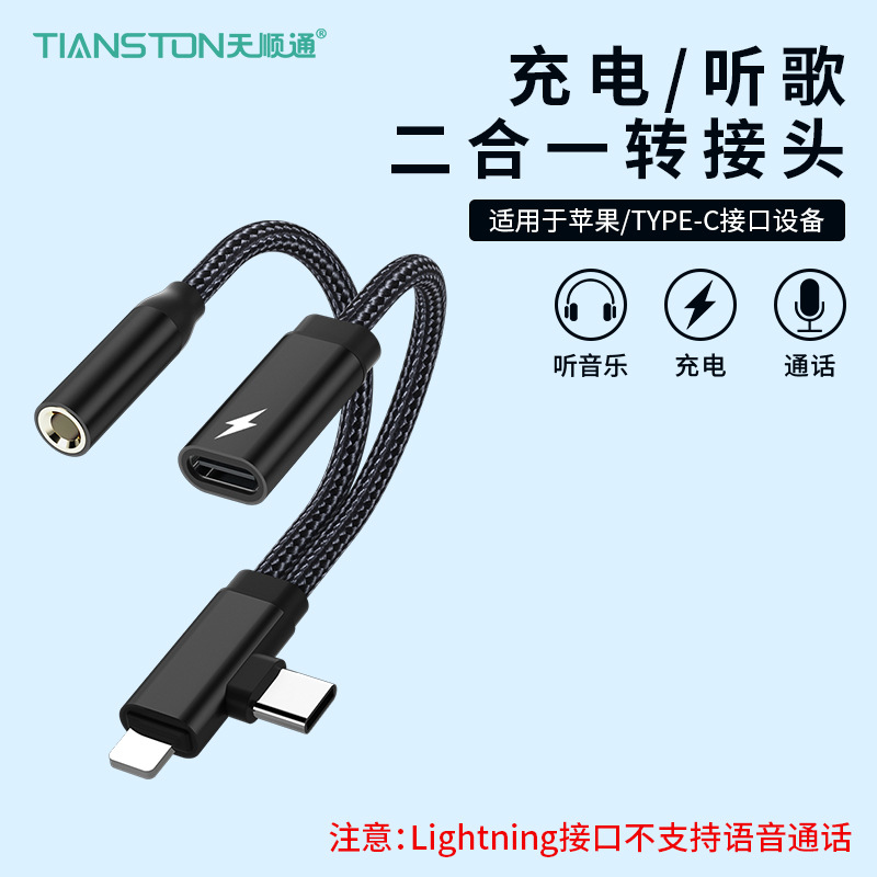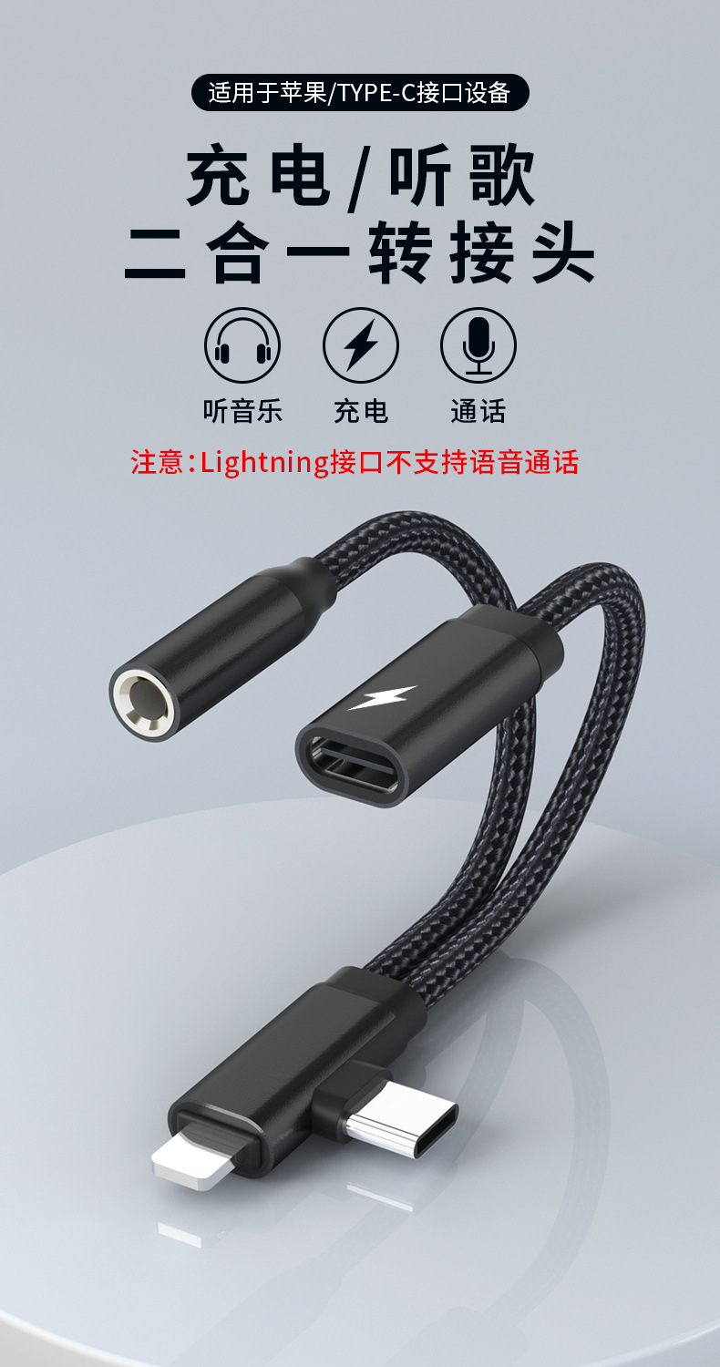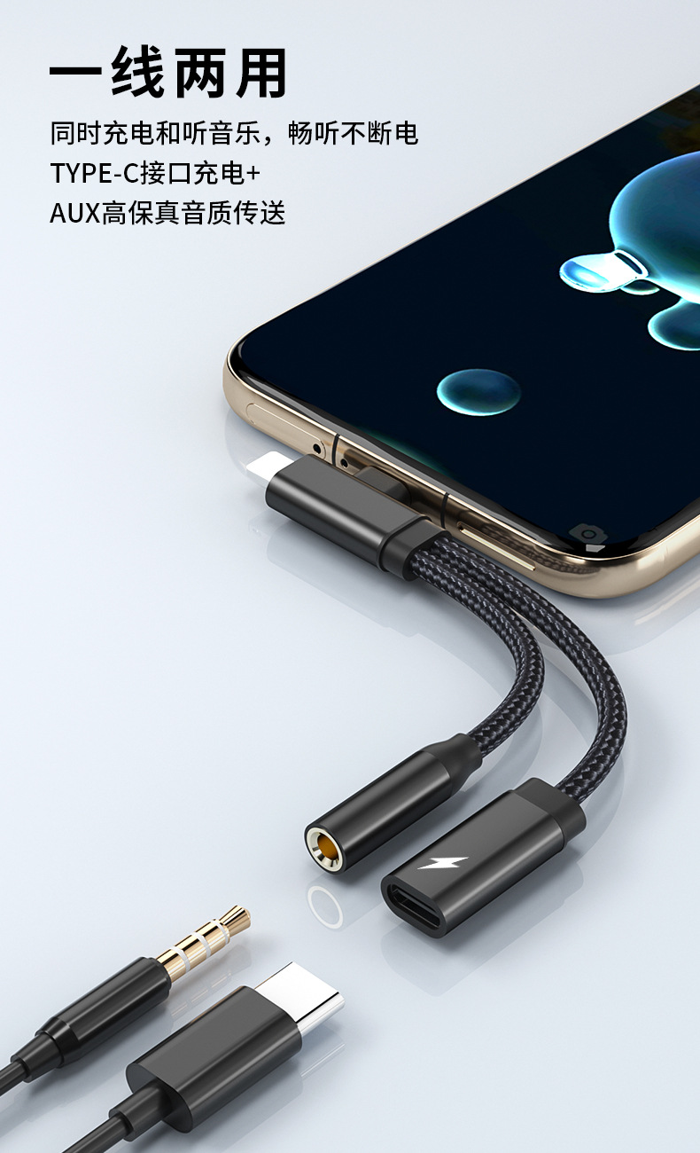 Apple Huawei TYPE-C/Lightning-3.5mm 음악 듣기 및 충전에 적합 2-in-1 오디오 어댑터