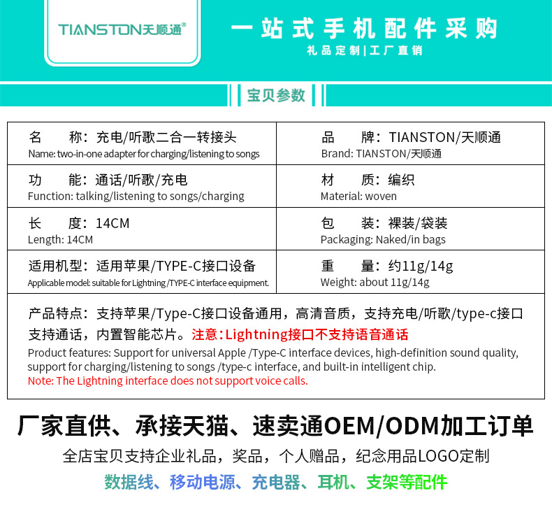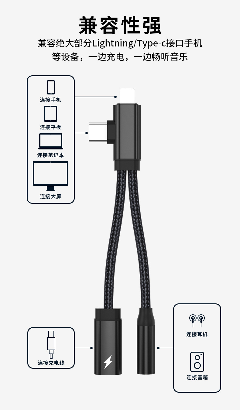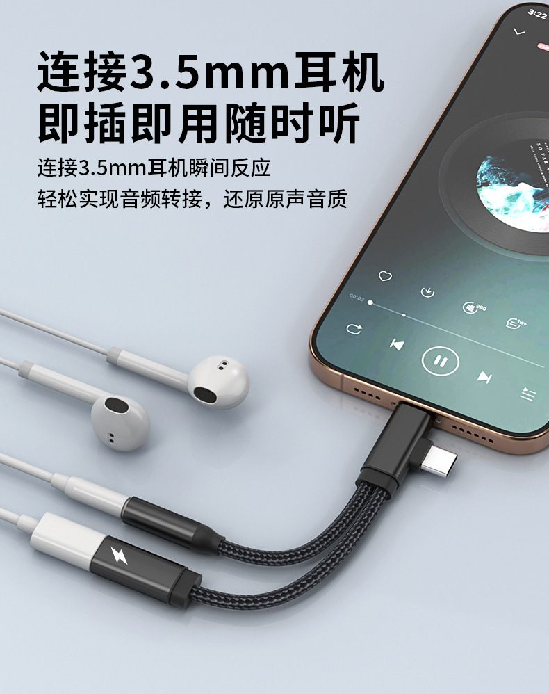 Apple Huawei TYPE-C/Lightning-3.5mm 음악 듣기 및 충전에 적합 2-in-1 오디오 어댑터스토어 가기