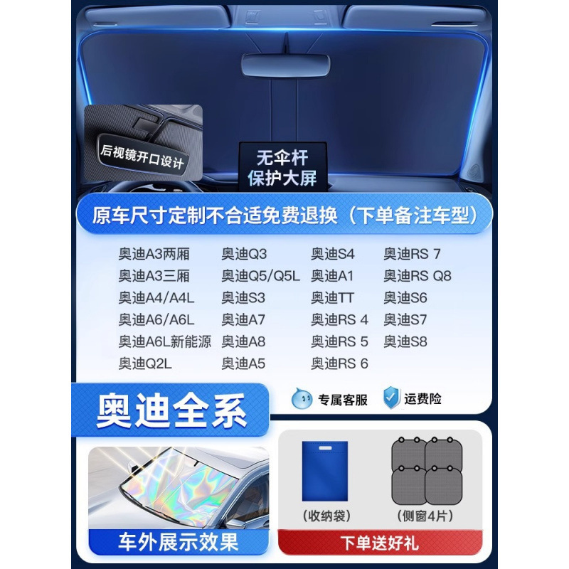 • [Audi 전용] 상단에는 4겹의 레이저 코팅 + 비닐 단열재가 적용되어 있습니다.★4개의 측면 가드가 함께 제공됩니다.