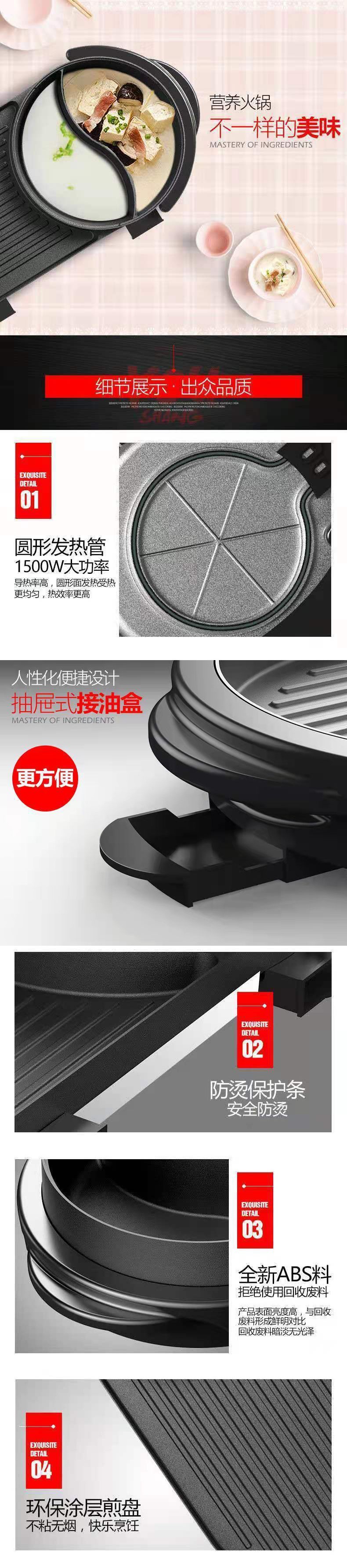 전골 일체형 냄비 가정용 다기능 한식 바베큐 전골 일체형 냄비 전기 그릴 전기 바베큐 그릴