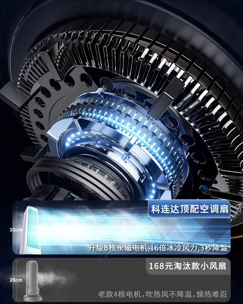 • 딥 씨 블루 [업그레이드된 충전 모델] 36H 배터리 수명 16℃에어컨 냉동 광각 순환 쉐이킹 헤드 수직 및 수평 교수형 3가지 용도
